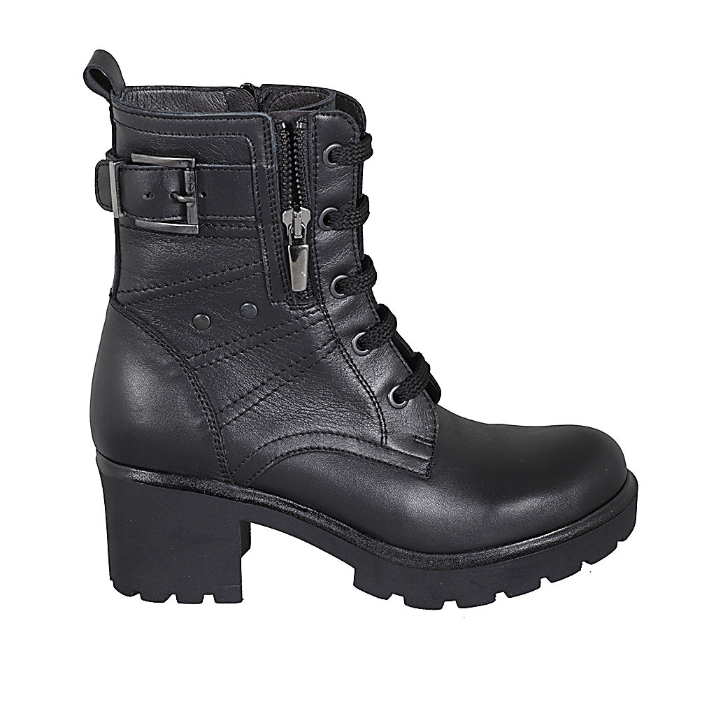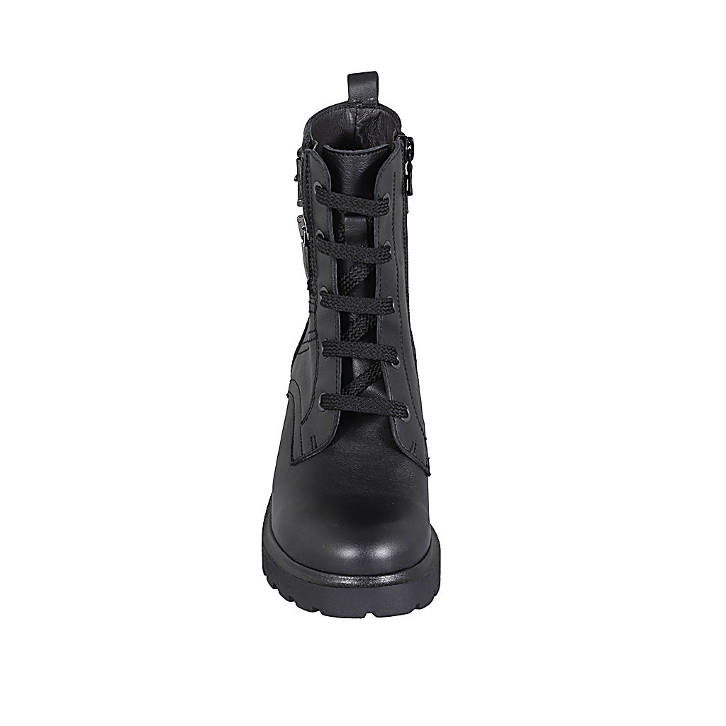Damenstiefelette mit Schnürsenkeln, Nieten, Schnallen und Reißverschlüssen aus schwarzem Leder Absatz 6
