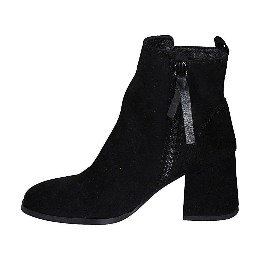 Quadratische Damenstiefelette mit Reißverschluss und Niete aus schwarzem Wildleder Absatz 7