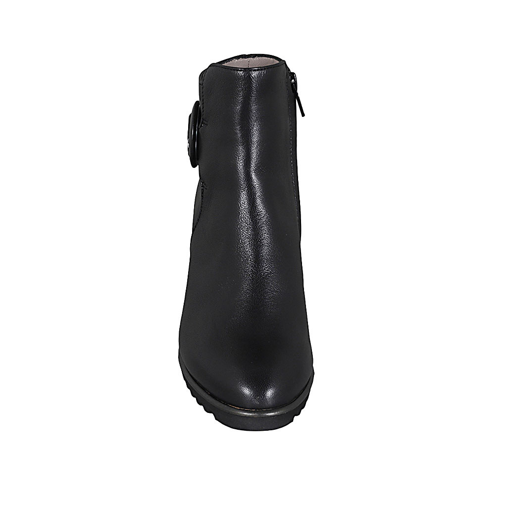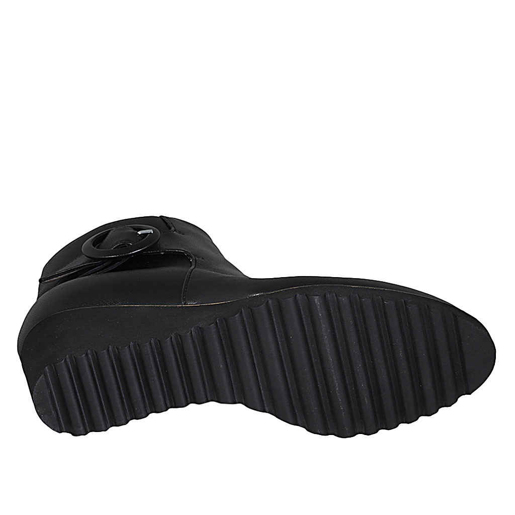 Damenstiefelette mit Schnalle und Reißverschluss aus schwarzem Leder Keilabsatz 6