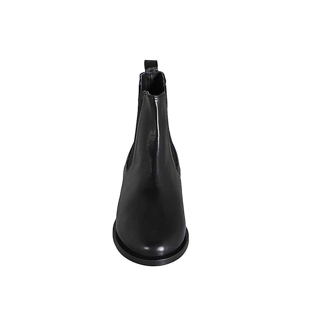 Damenzehenpantolette aus schwarzem Leder und silberfarbenem Lackleder Absatz 1