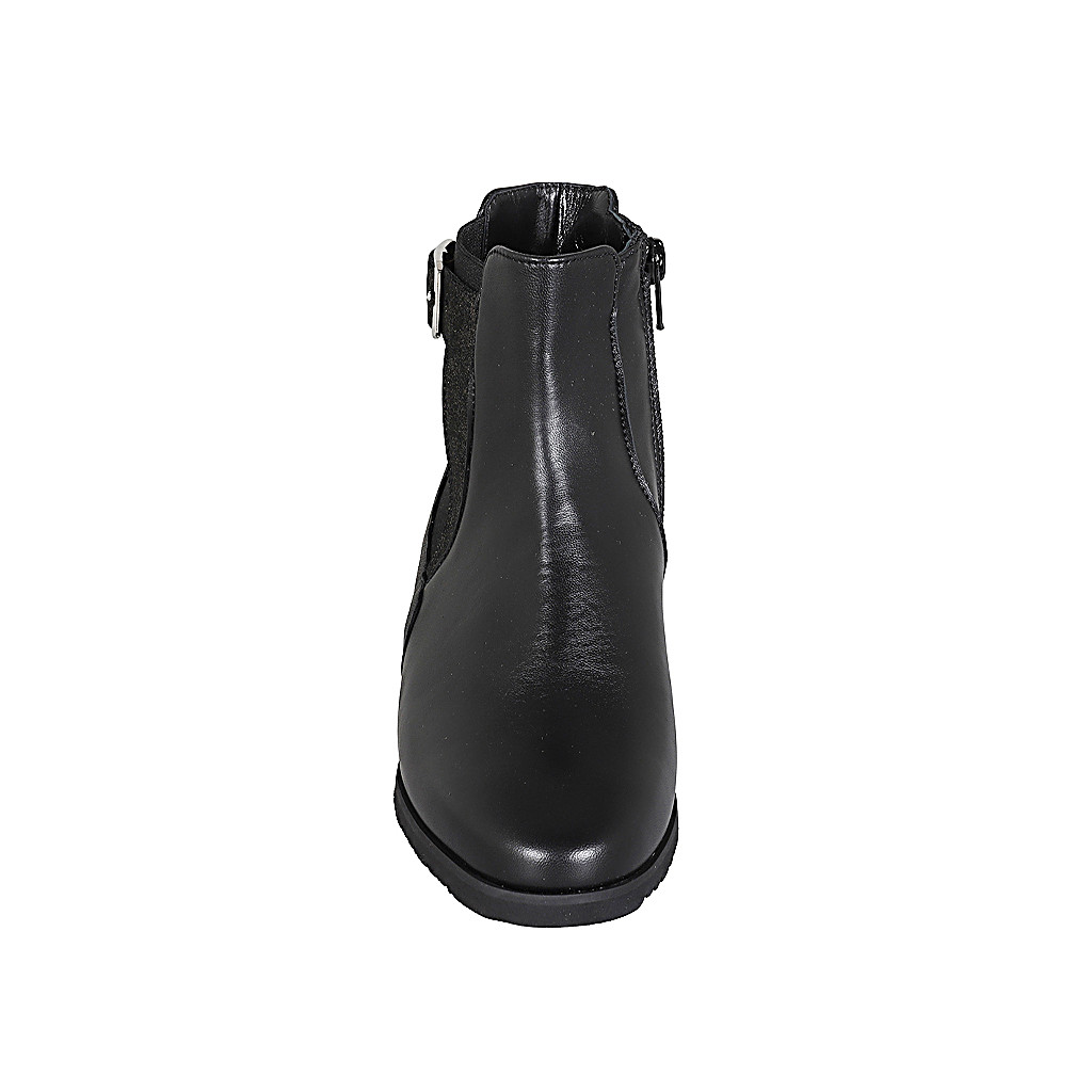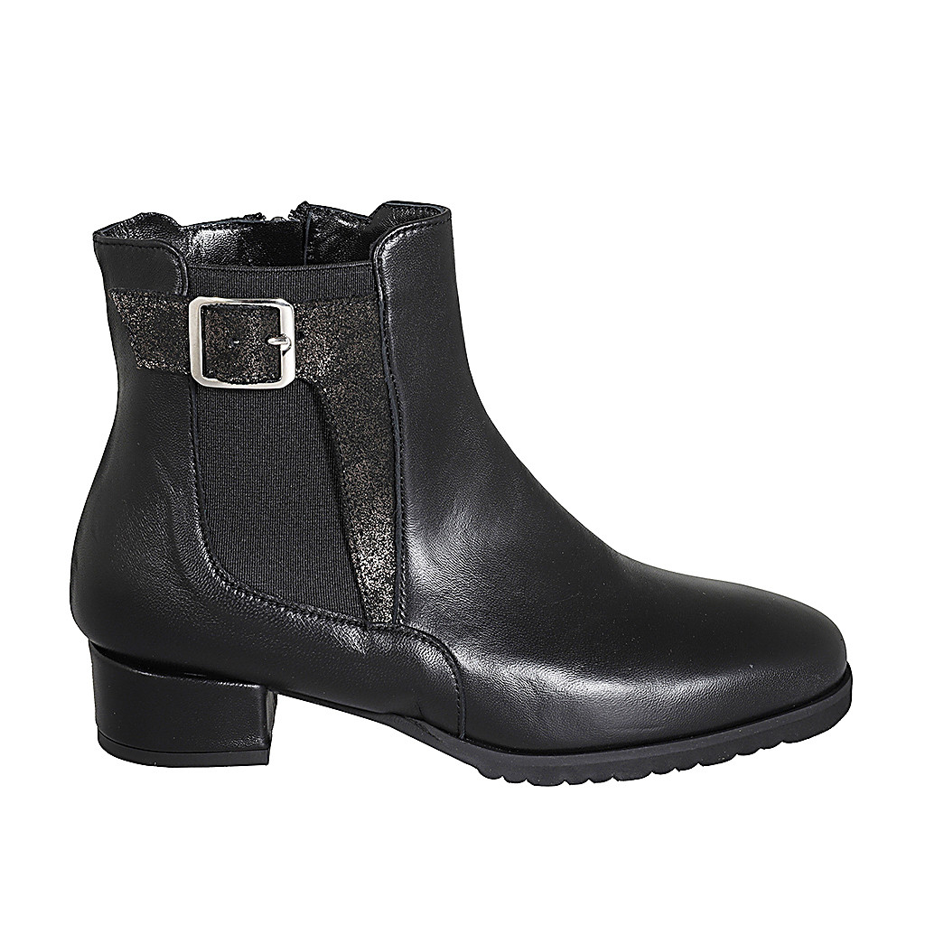 Stiefelette mit abnehmbarer Innensohle,Gummiband,Schnalle und Reißverschluss aus schwarzem und kohlelaminiertem Leder Absatz 3