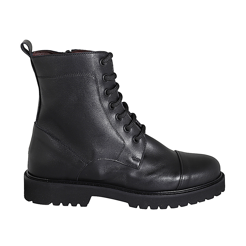Damenstiefelette mit Schnürsenkeln, Reißverschluss und Kappe aus schwarzem Leder Absatz 3