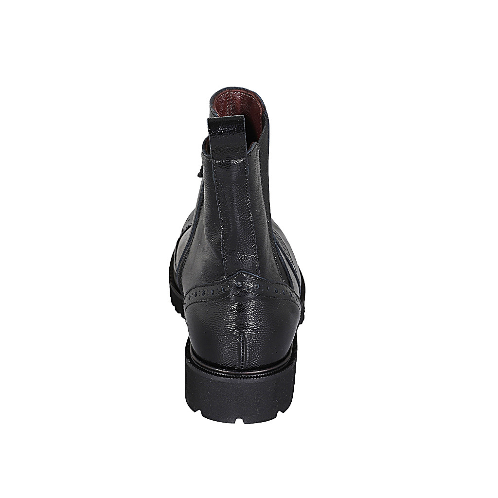Damenstiefelette mit Gummiband, Broguemuster und Reißverschluss aus schwarzem Lackleder Absatz 3