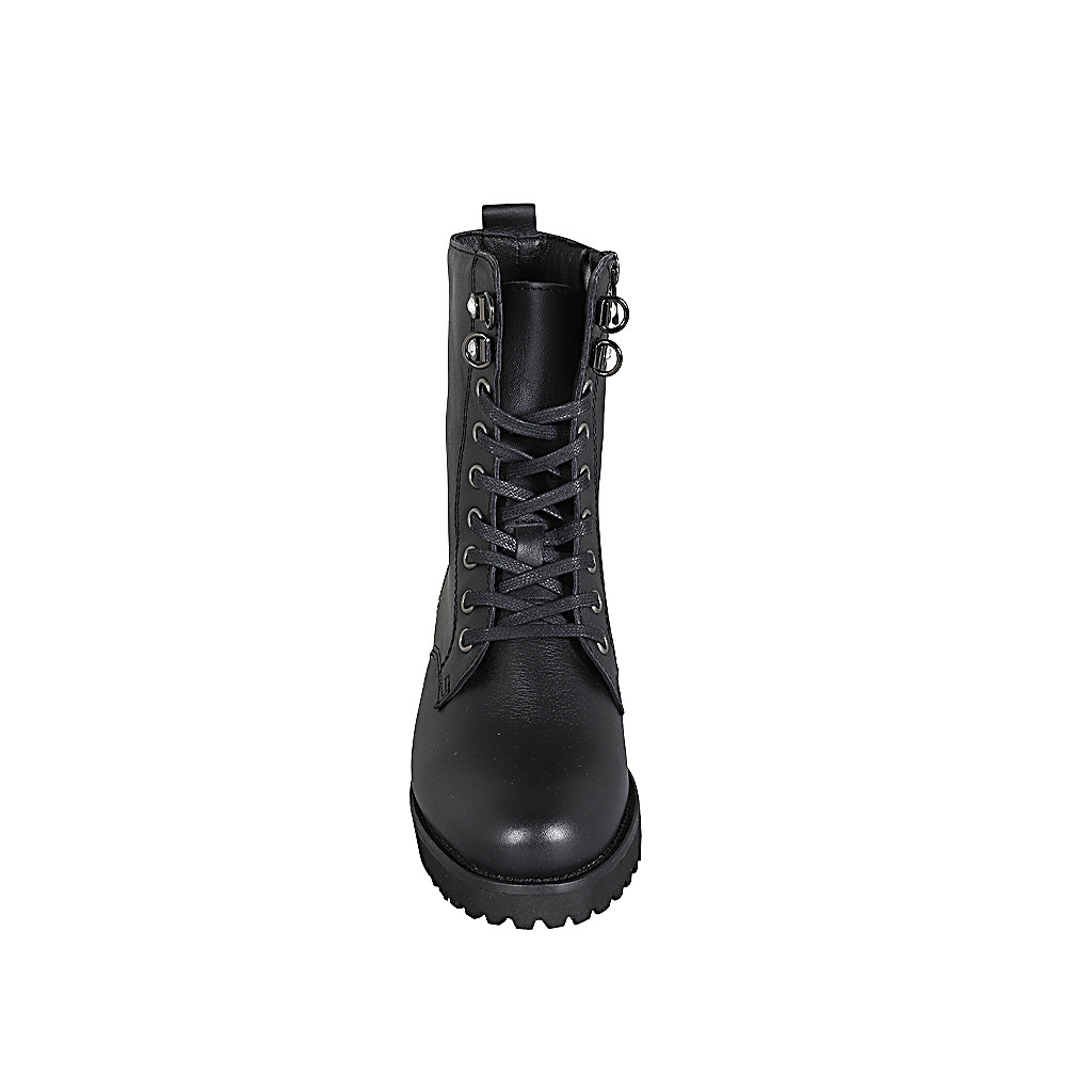 Stiefelette mit Schnürsenkeln und Reißverschluss aus schwarzem Leder Absatz 3