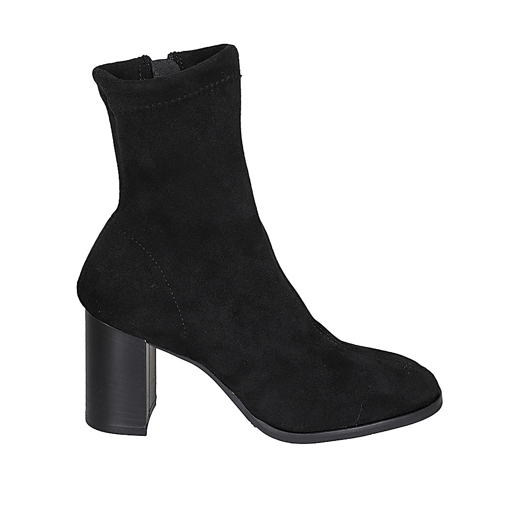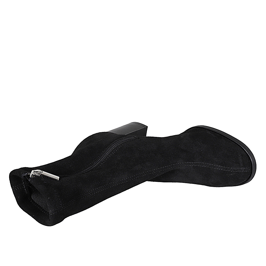 Damenpantoletten aus schwarzem Wildleder mit Accessoire, Plateau und Absatz 7