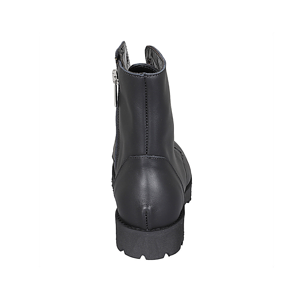 Damenstiefelette mit Schnürsenkeln und Reißverschluss aus schwarzem glattem Leder mit Absatz 3