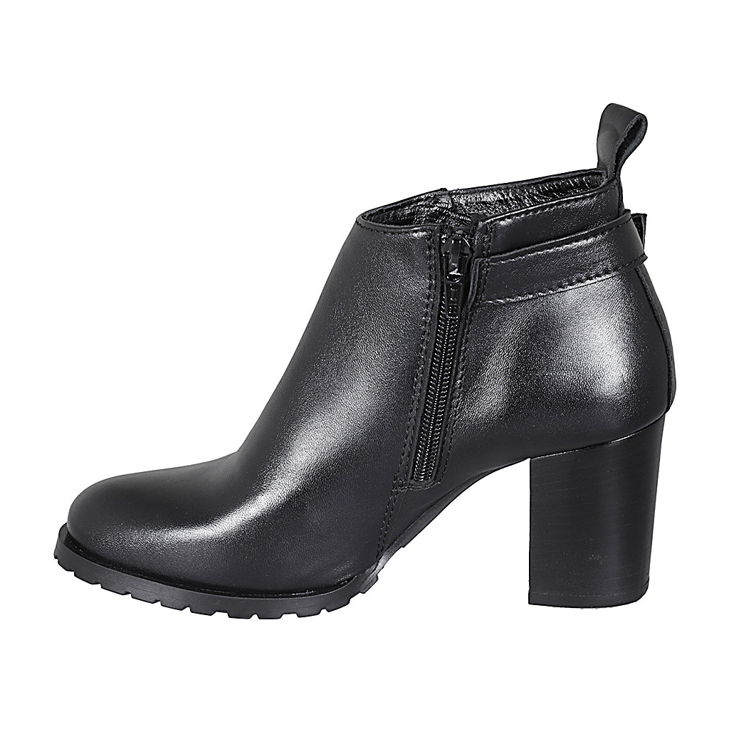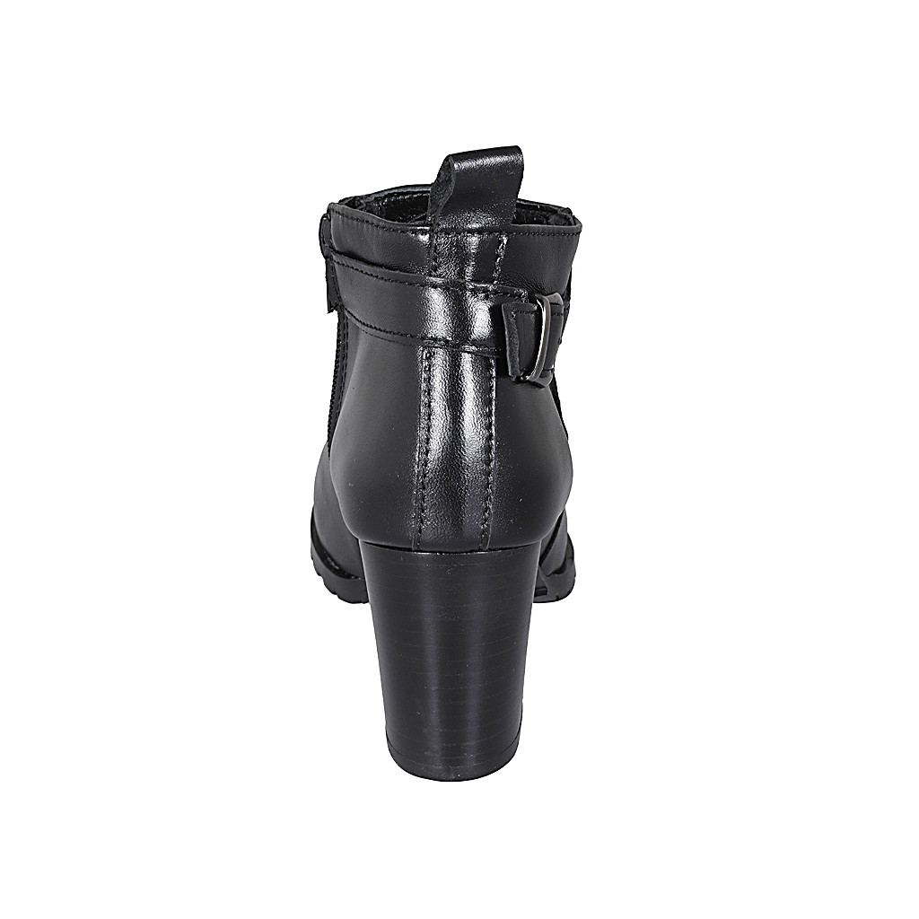 Niedrige Damenstiefelette mit Schnalle und Reißverschluss aus schwarzem Leder Absatz 7