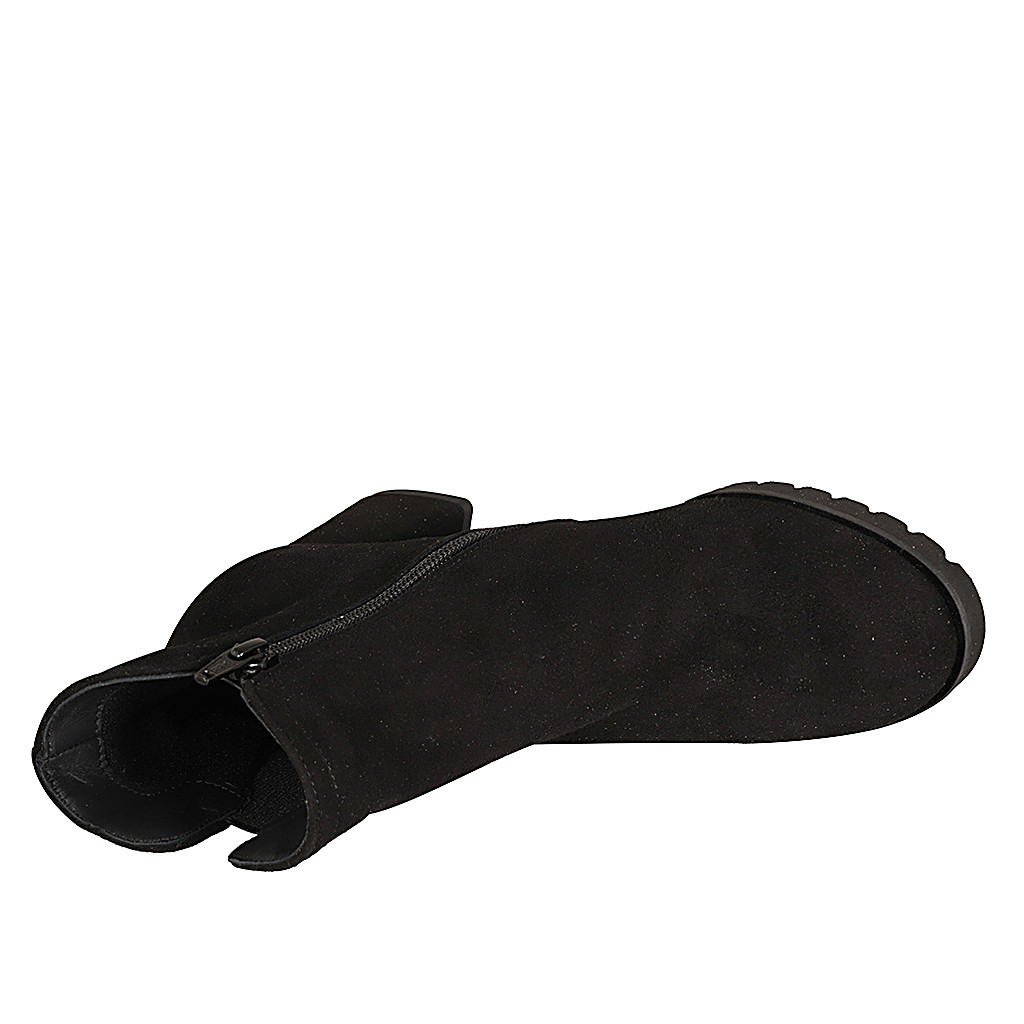 Damenpump mit Riem und Schleife aus schwarzem und rotem Leder Absatz 10
