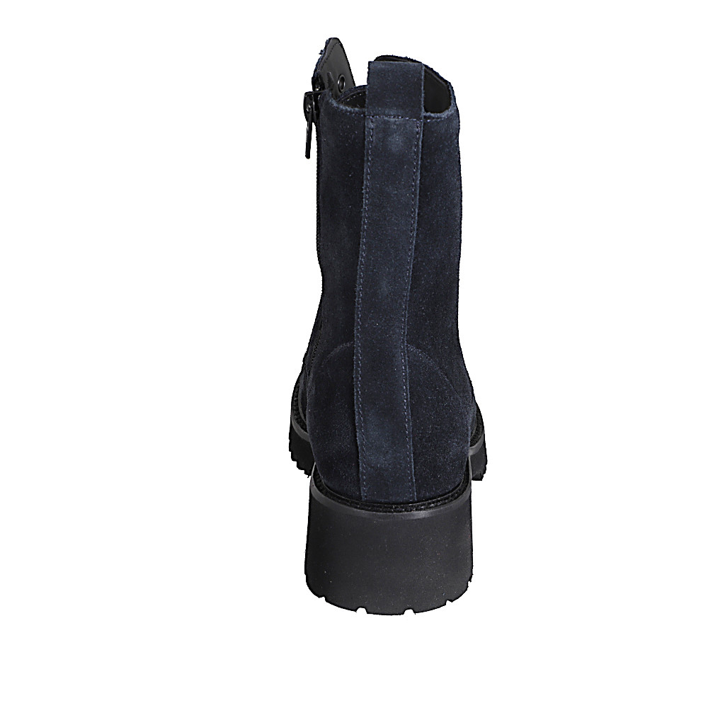 Damenstiefelette mit Reiβverschluss und Schnalle aus schwarzem und goldenem gemustertem Wildleder Absatz 6