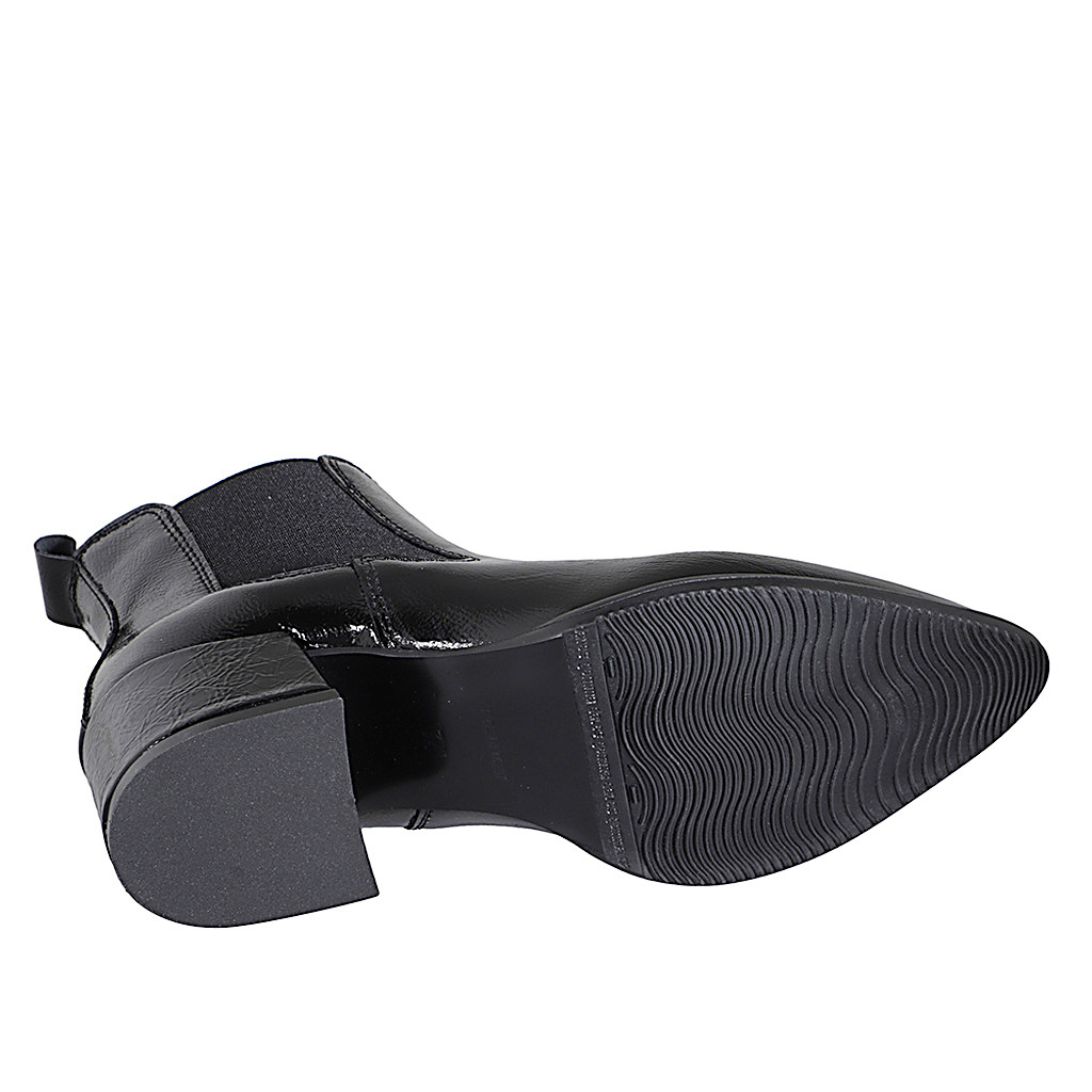 Damenstiefelette mit spitzer Spitze und Gummibändern aus schwarzem Lackleder Absatz 5