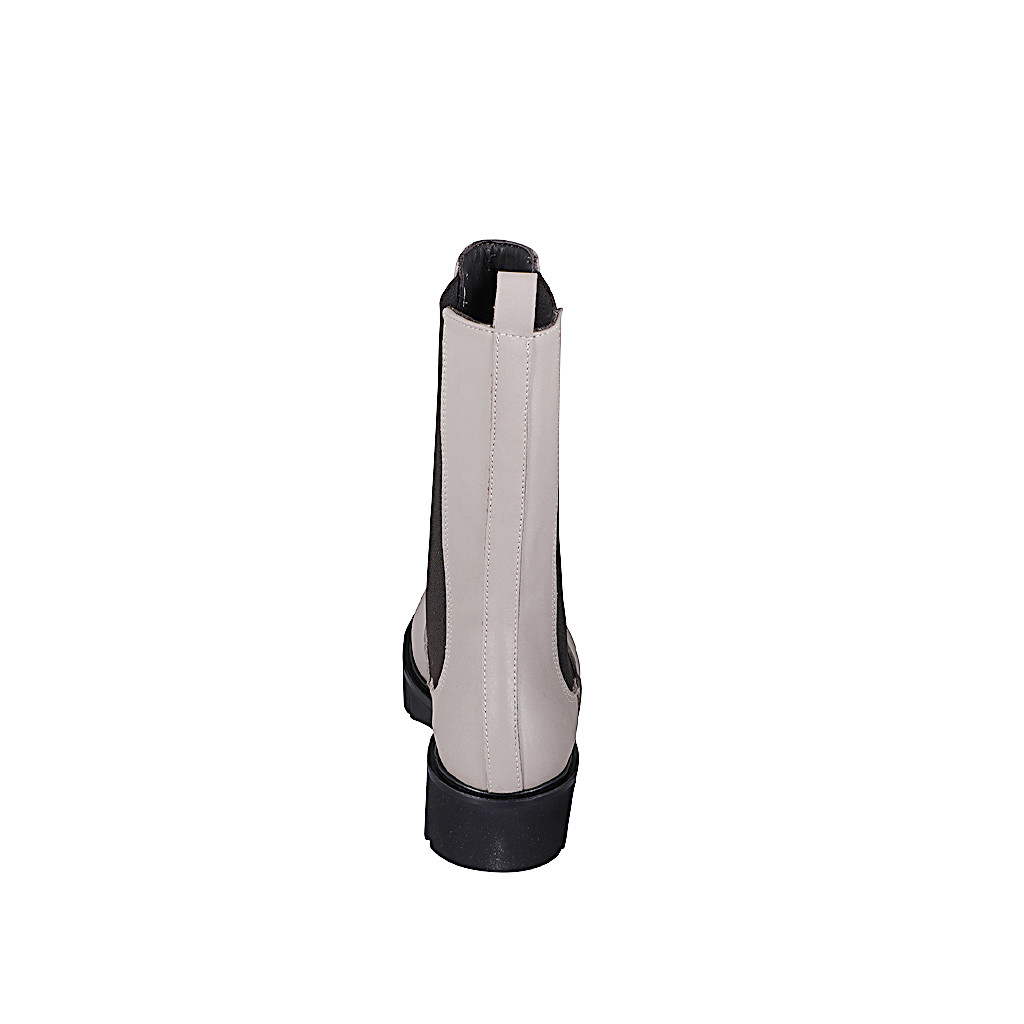 Hohe Damen Chelsea Stiefelette mit Gummibänder aus cremefarbigem Leder mit Absatz 4