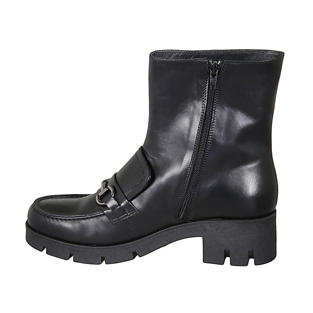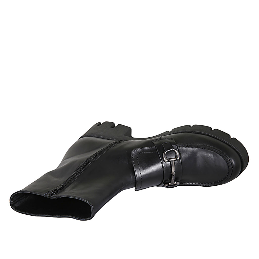 Woman's ankle boot with zipper and accessory in black leather heel 6 - Available sizes:  42, 45