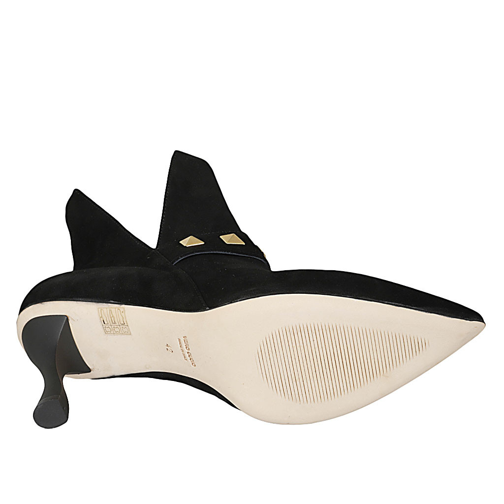 Woman's ankle boot with zipper in black suede and elastic material heel 3