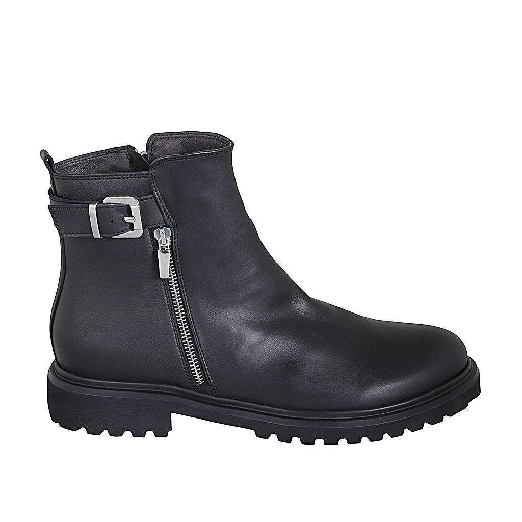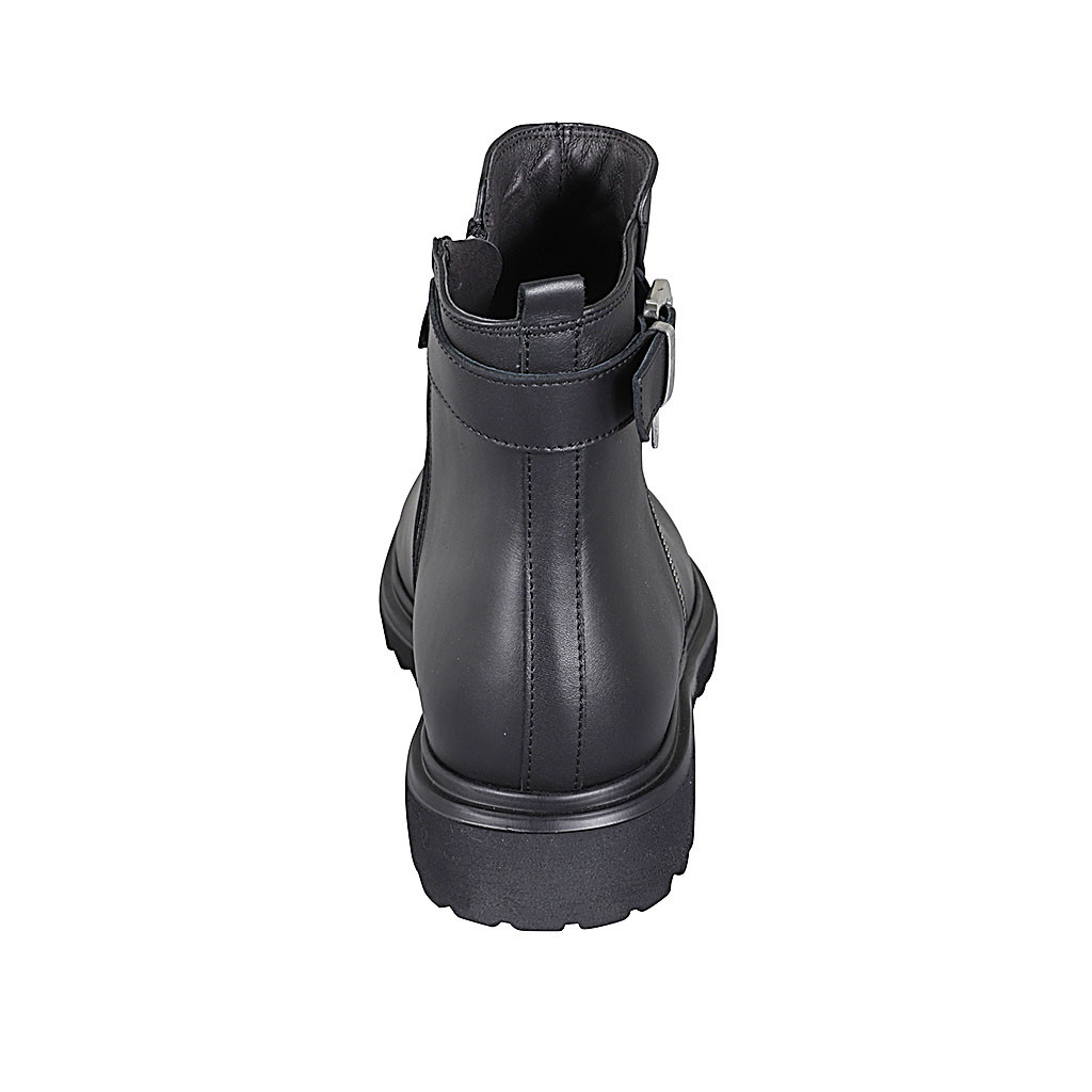Woman's sandal in black leather with silver and copper rhinestones heel 2