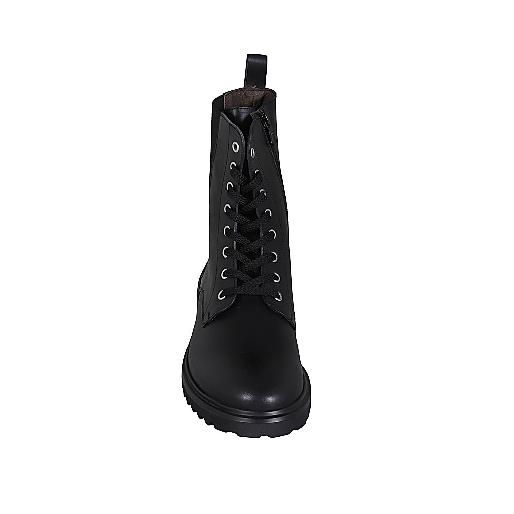 Woman's laced ankle boot with zipper and elastic band in black leather heel 3 - Available sizes:  44, 45, 46