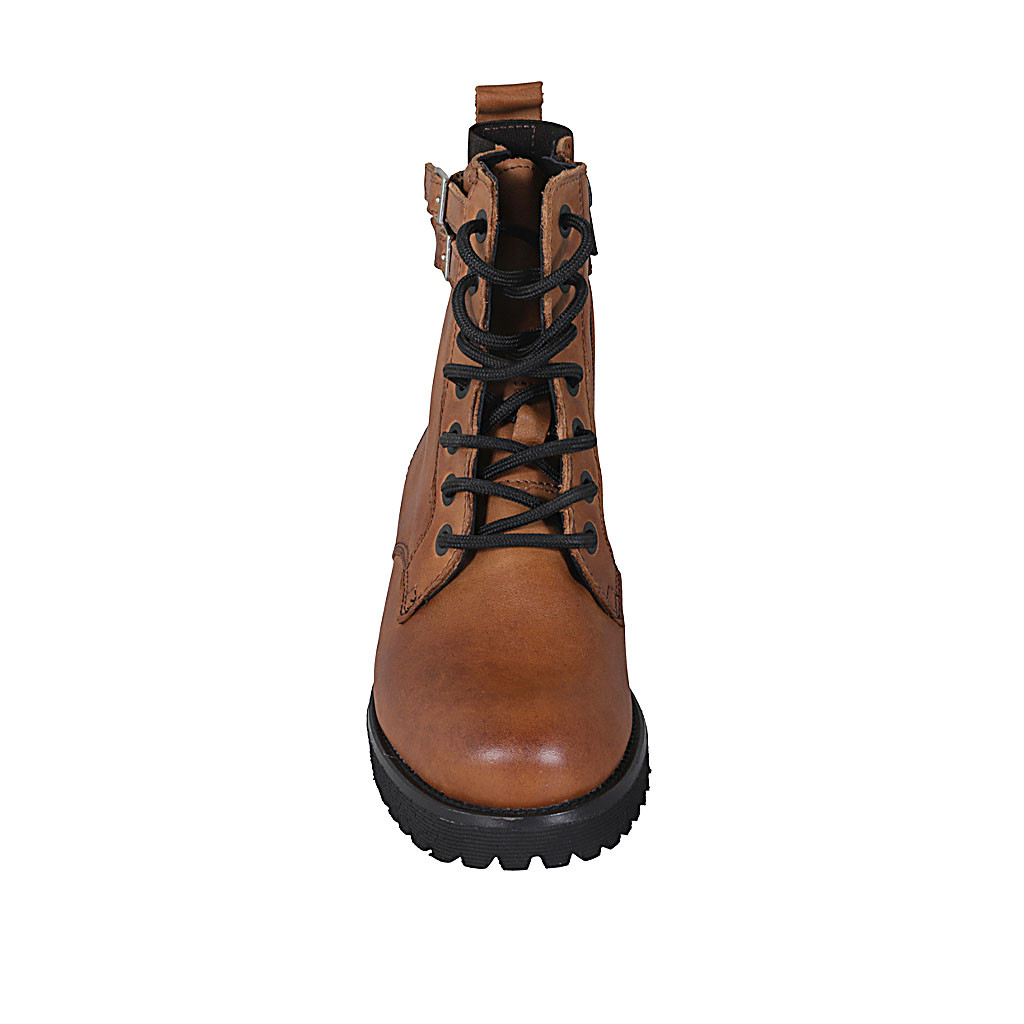 Woman's laced ankle boot with zipper, elastic band and studs in brown nubuck leather heel 6