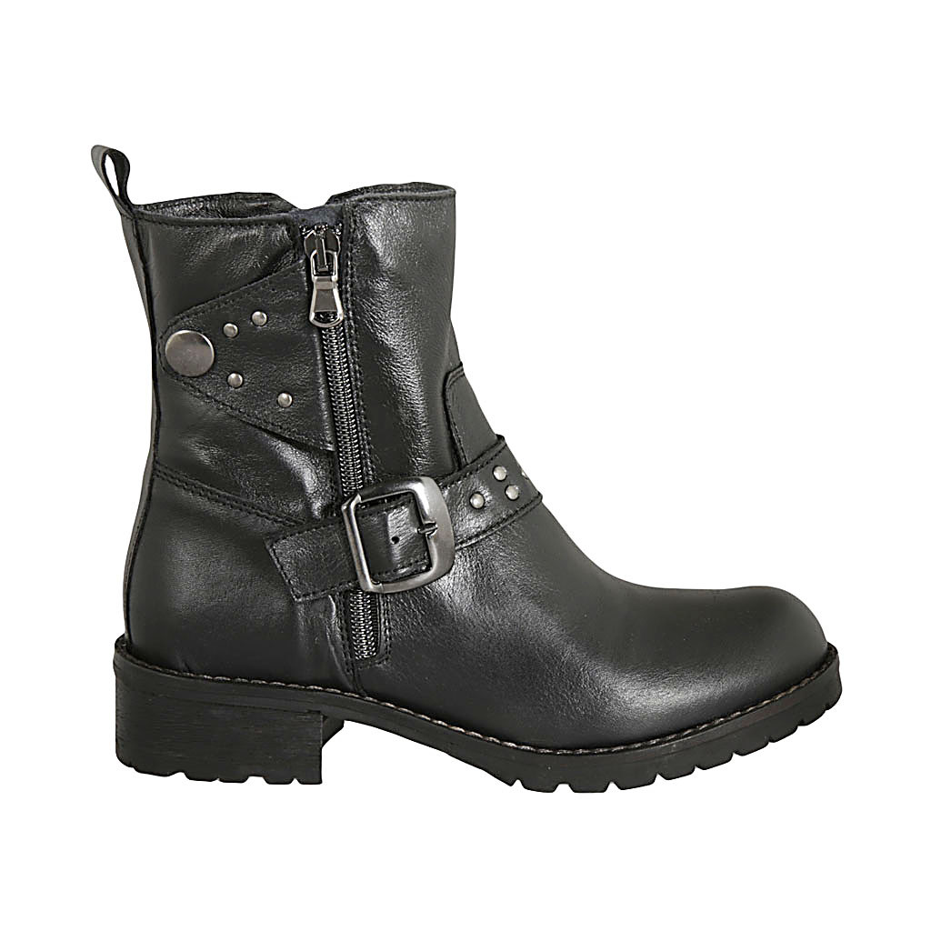 Woman's loafer with elastic band and accessory in black leather with heel 2