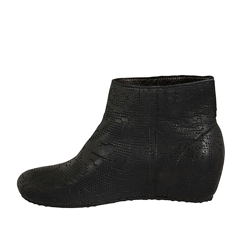 Woman's ankle boot in black dotted leather wedge heel 5 - Available sizes:  42, 43