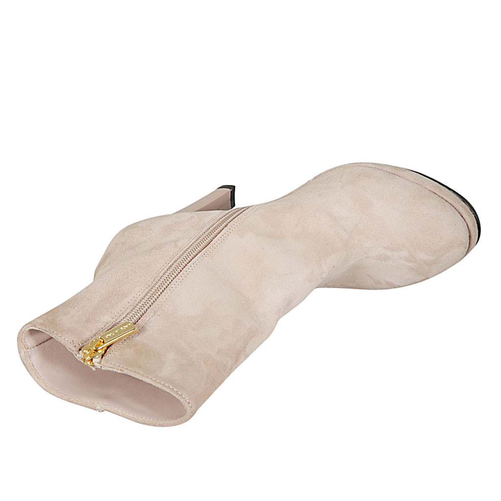 Woman's pointy ankle boot with zipper, captoe, pearls and studs in black leather heel 10
