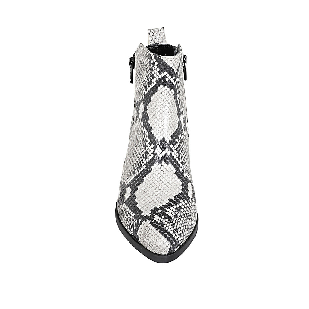 Woman's pointy texan ankle boot with zippers in black and white printed leather heel 4 - Available sizes:  42