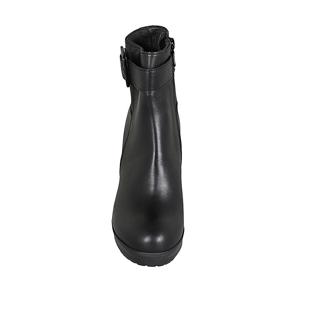 Woman's highfronted shoe with T-strap in maroon leather heel 3