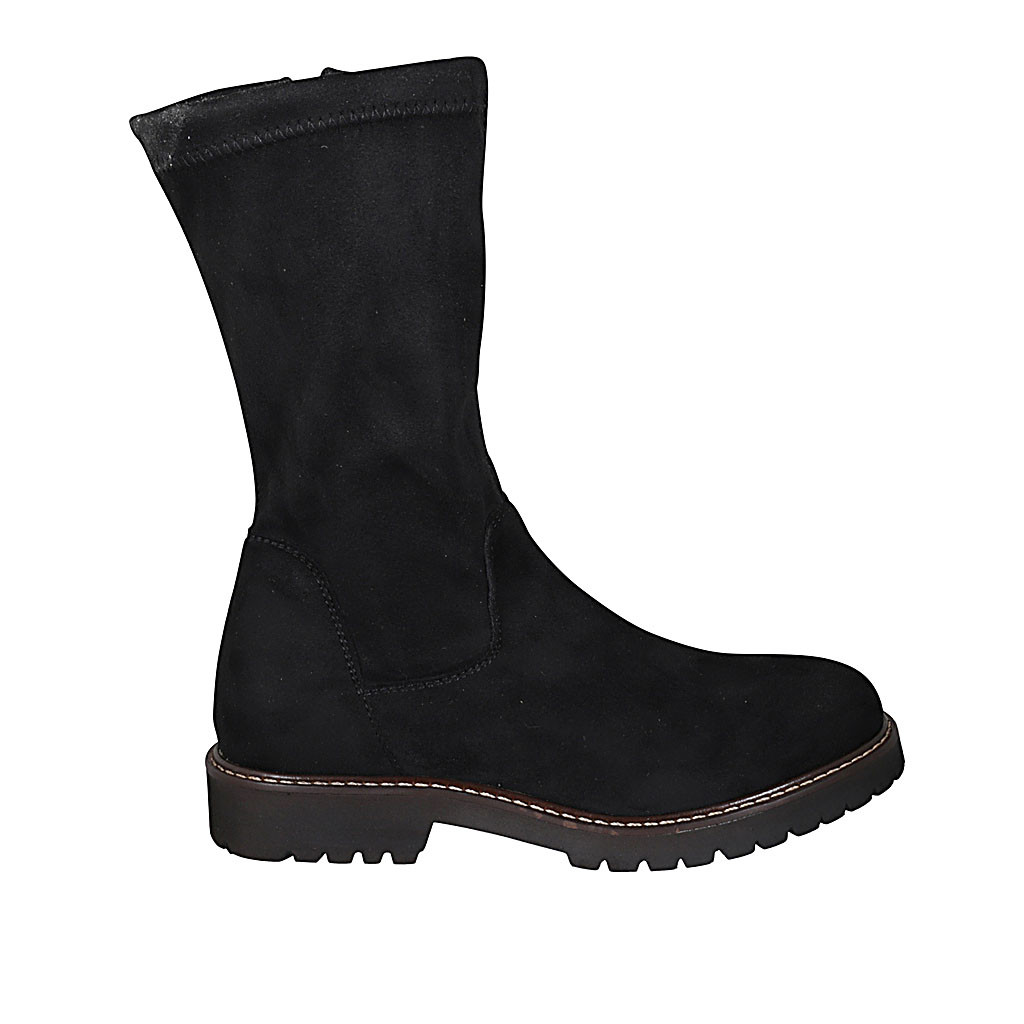 Woman's ankle boot with zipper in brown suede and elastic material heel 6