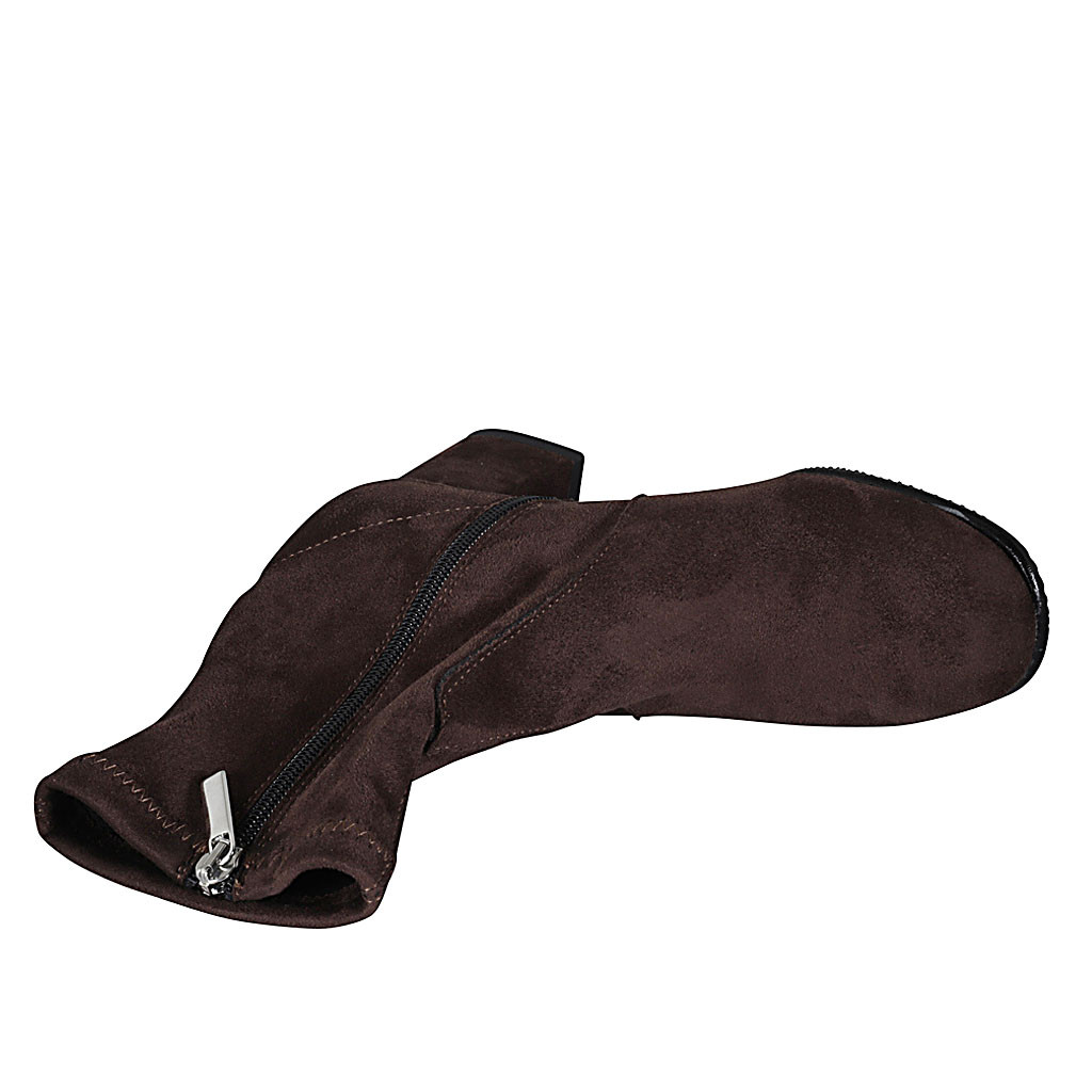 Woman's ankle boot with zipper in brown suede and elastic material heel 6 - Available sizes:  43