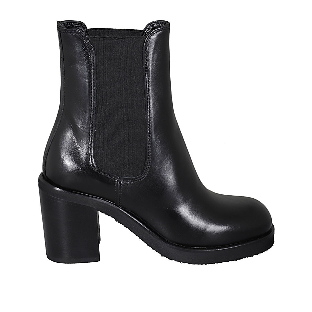 Woman's ankle boot with elastic bands and squared tip in black leather heel 8 - Available sizes:  42
