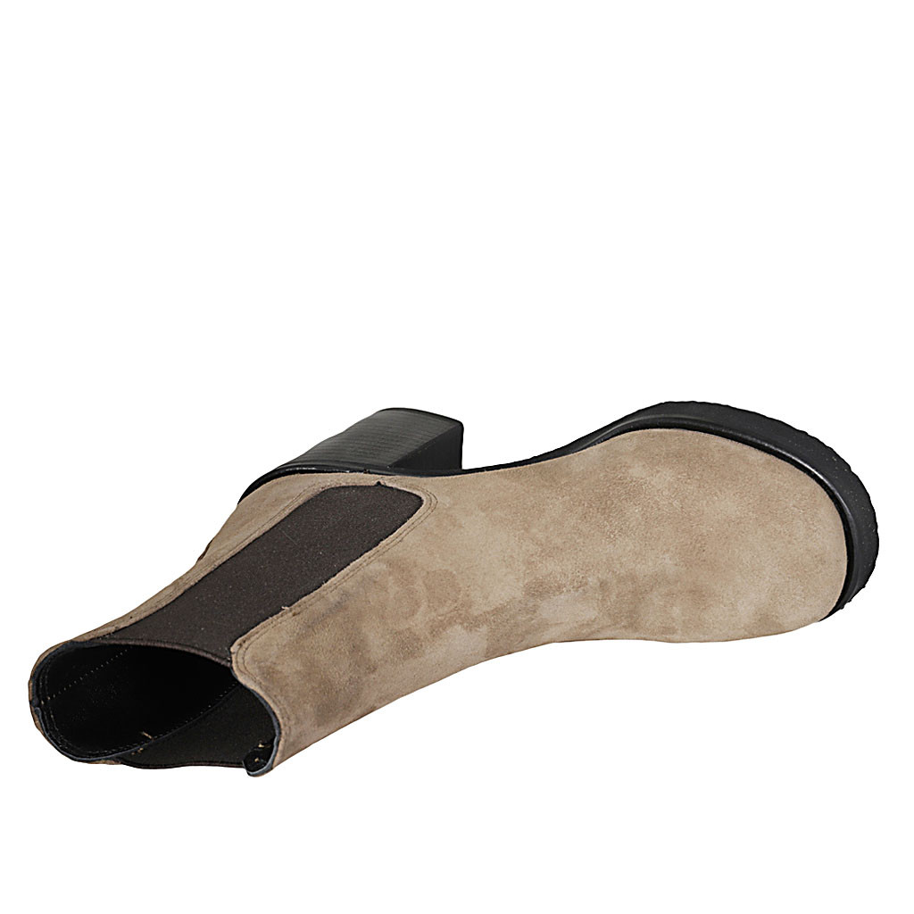 Woman's ankle boot with elastic bands and squared tip in taupe suede heel 8 - Available sizes:  43, 44