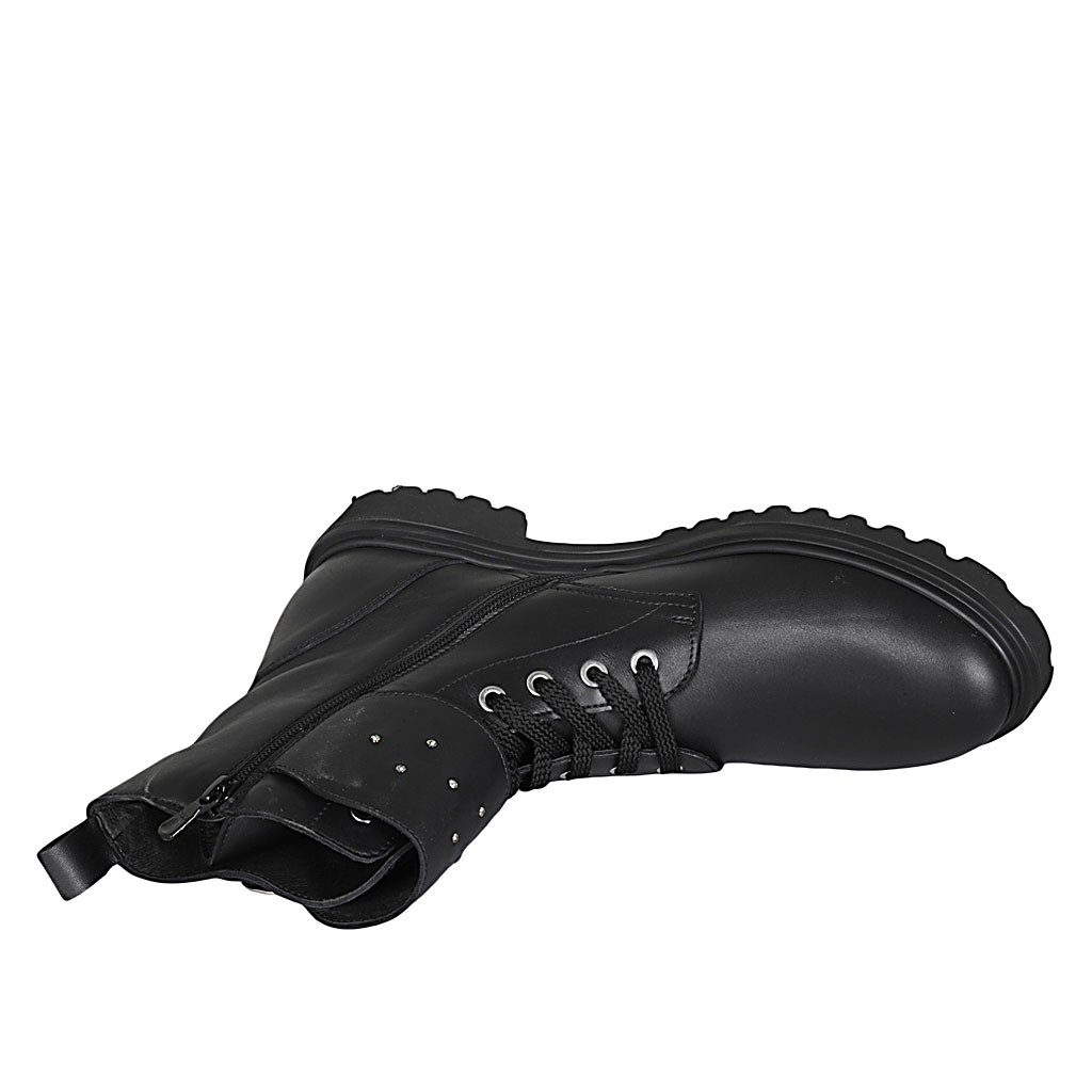 Woman's laced Oxford shoe in black leather with wingtip and heel 7
