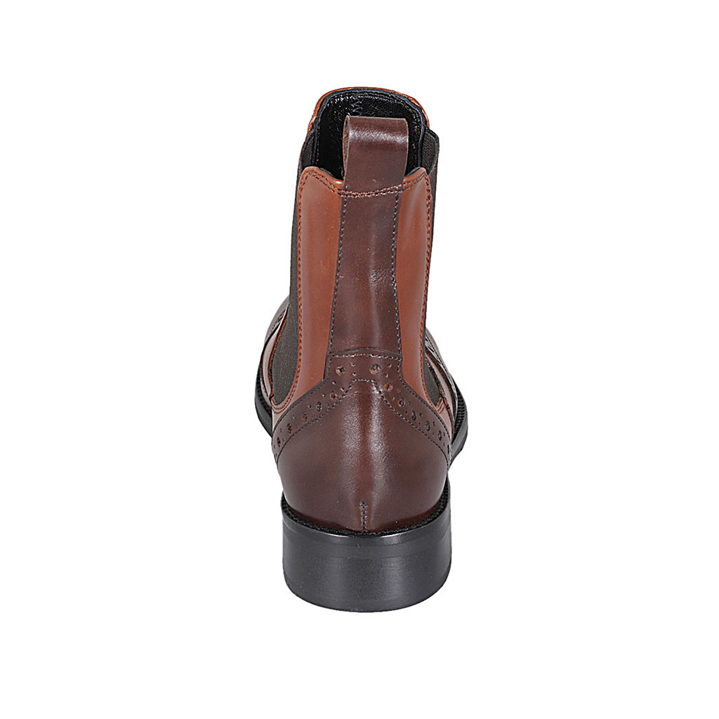 Woman's high ankle boot with elastic bands and captoe in black leather heel 3