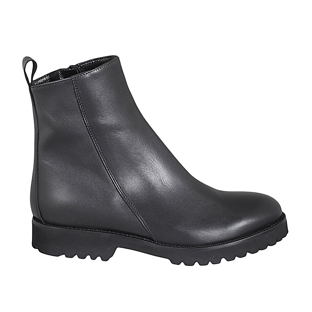 Woman's ankle boot with zipper in black smooth leather heel 3 - Available sizes:  33, 44