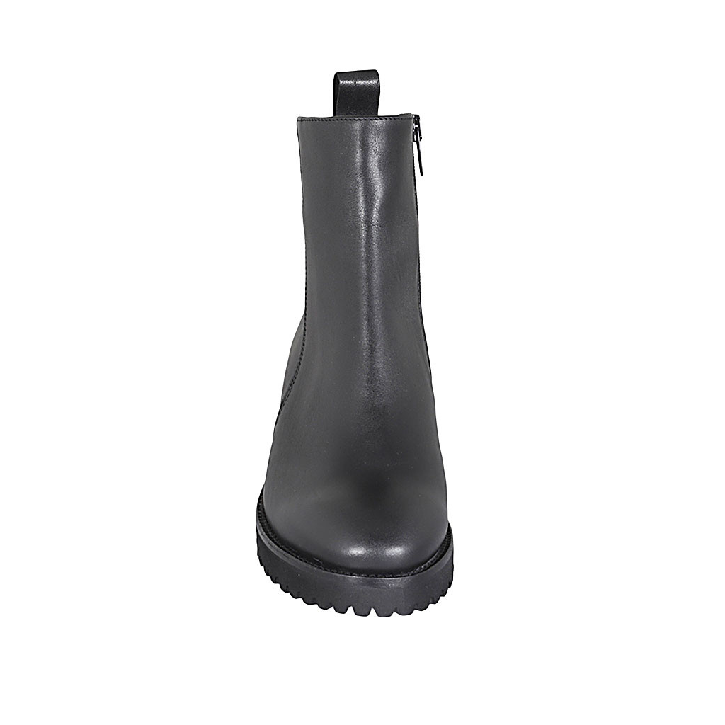 Woman's ankle boot with zipper in black smooth leather heel 3