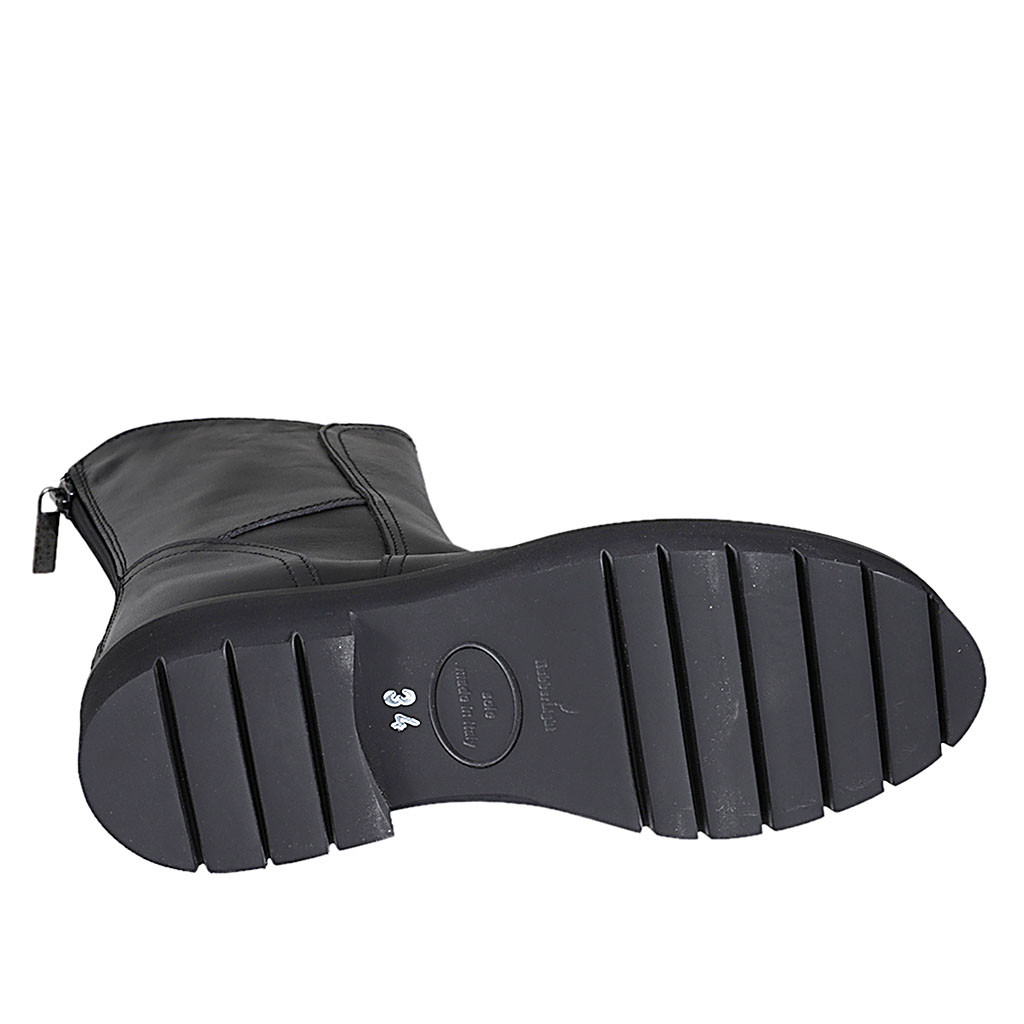 Woman's high and pointy ankle boot with zipper in black leather heel 10