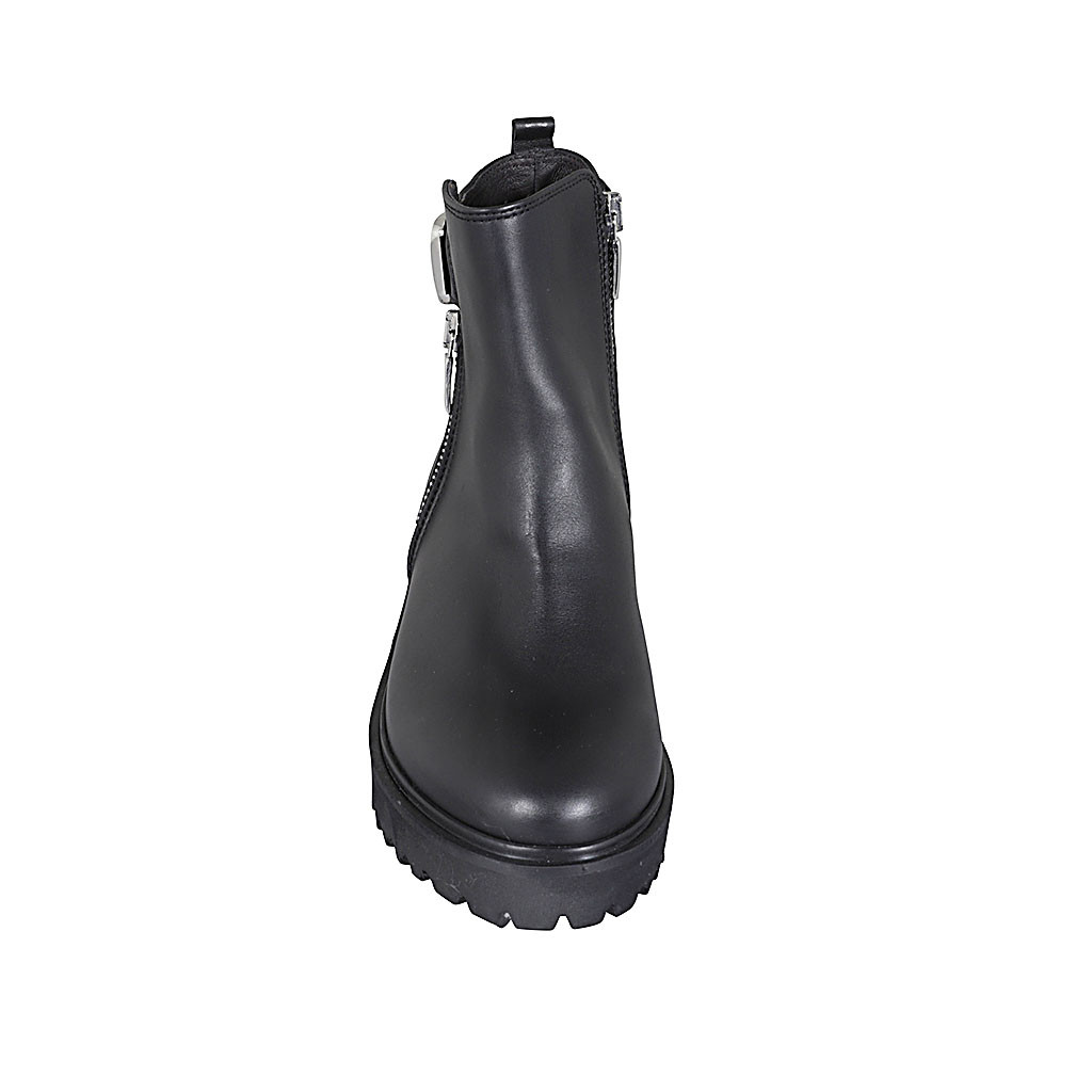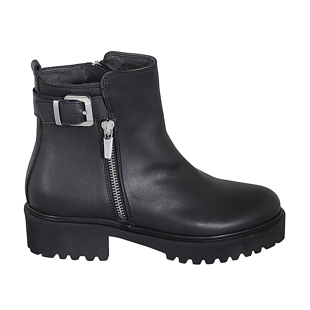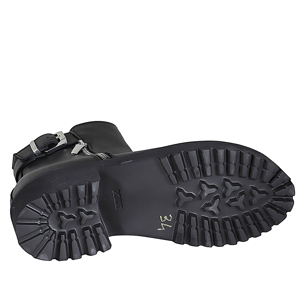 Woman's ankle boot with zippers and buckle in black leather heel 4 - Available sizes:  32, 33