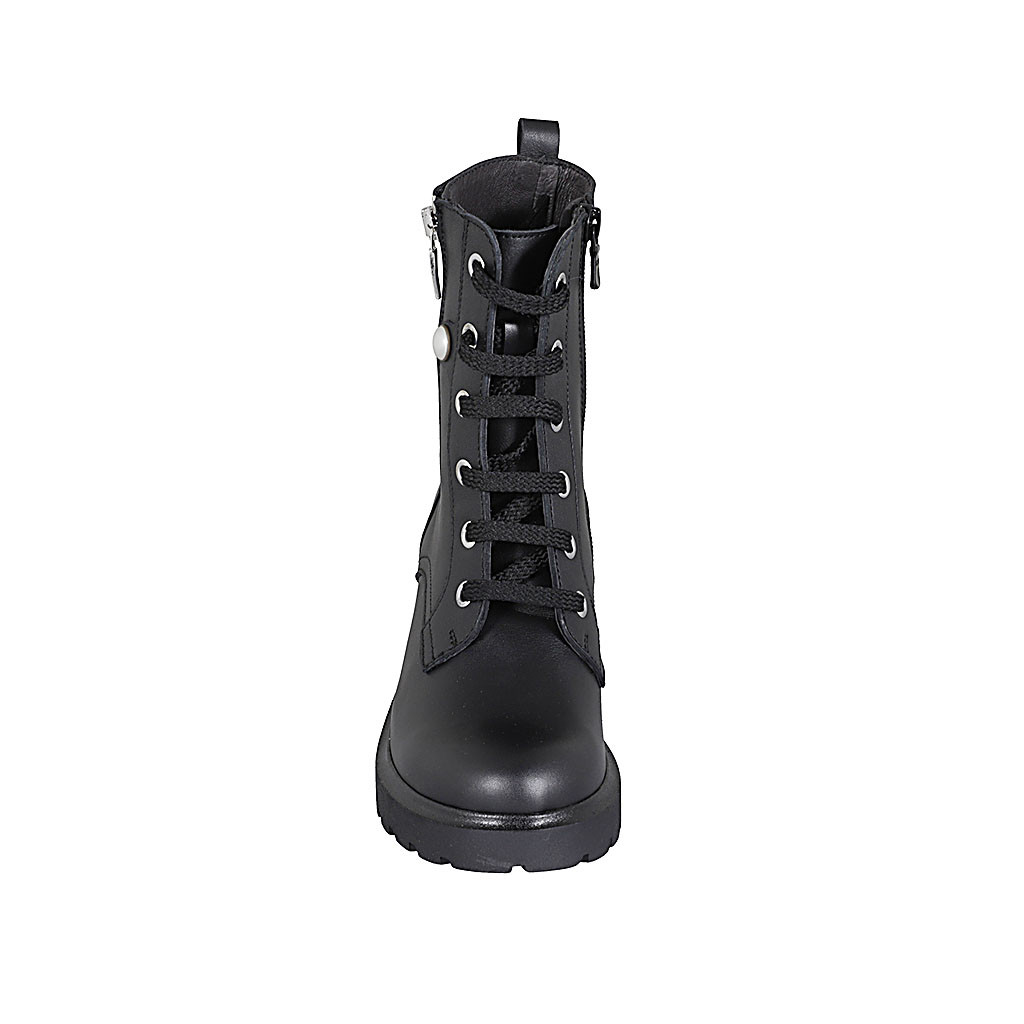 Woman's laced shoe in white leather and light blue and pink suede wedge heel 2