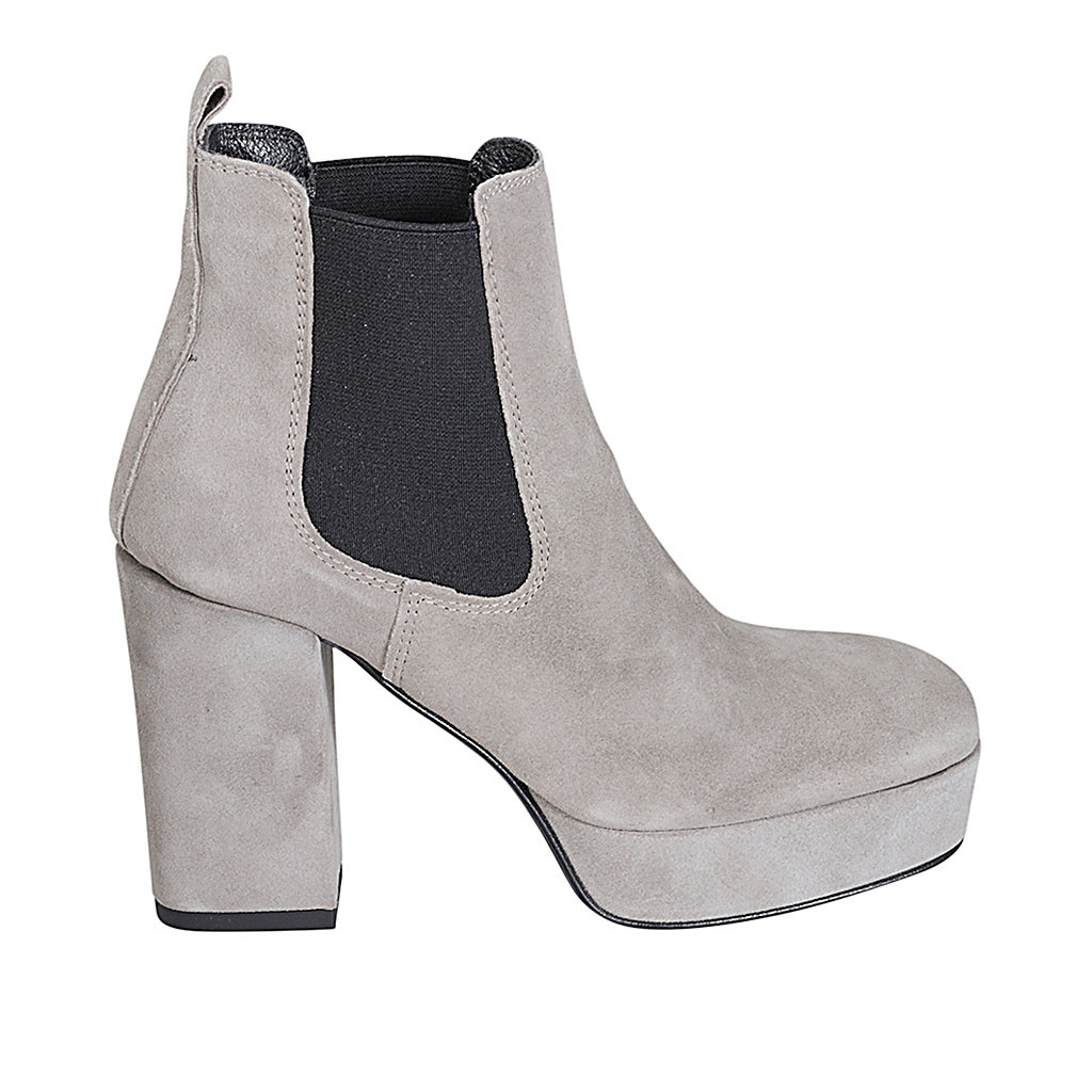 Woman's ankle boot with zipper and platform in black elastic material and leather heel 10