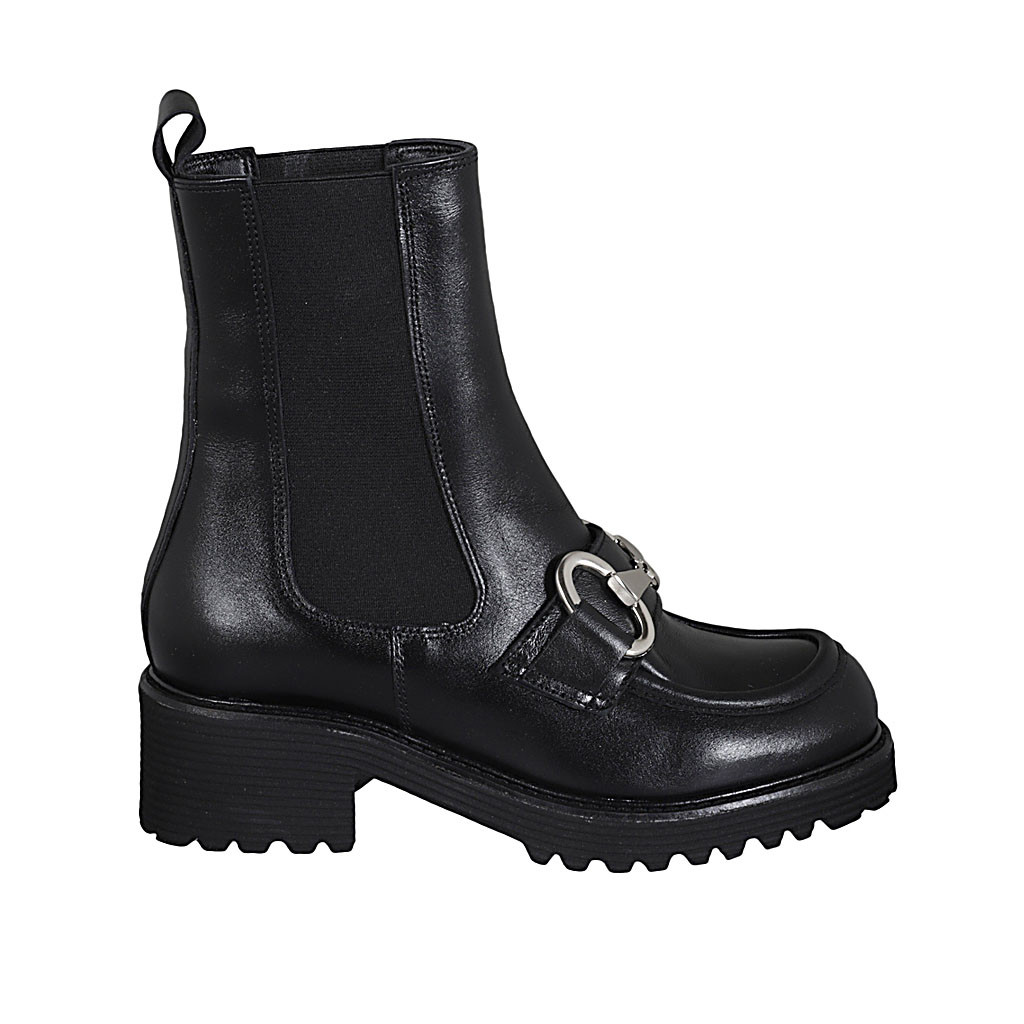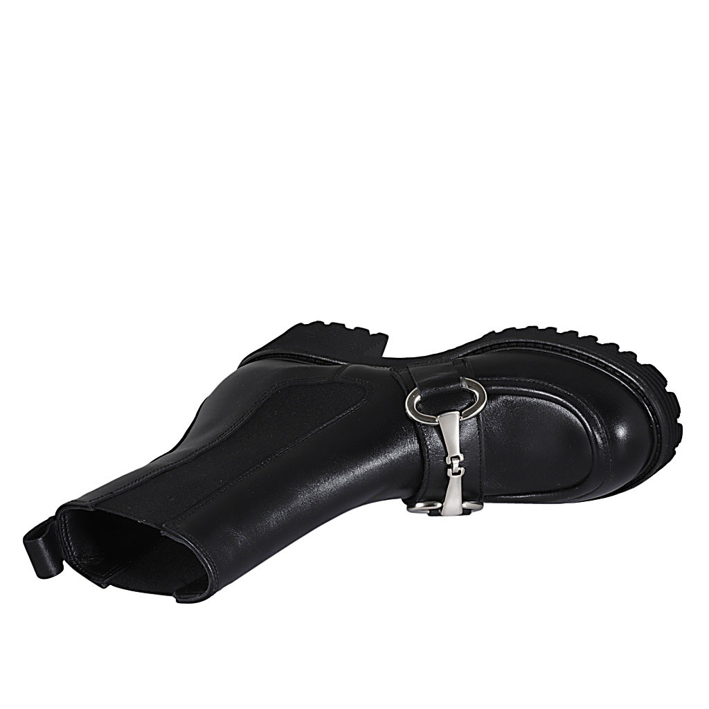 Woman's ankle boot with zipper and platform in black leather heel 11