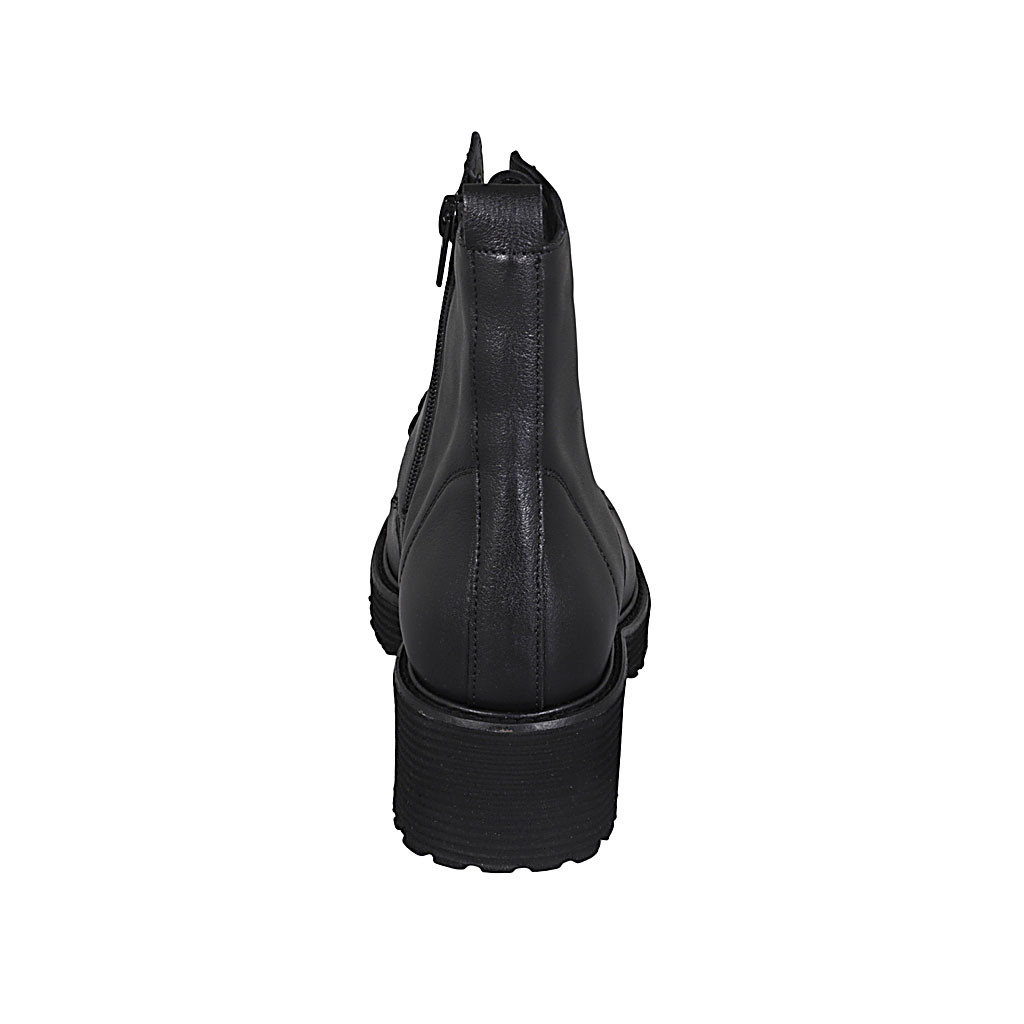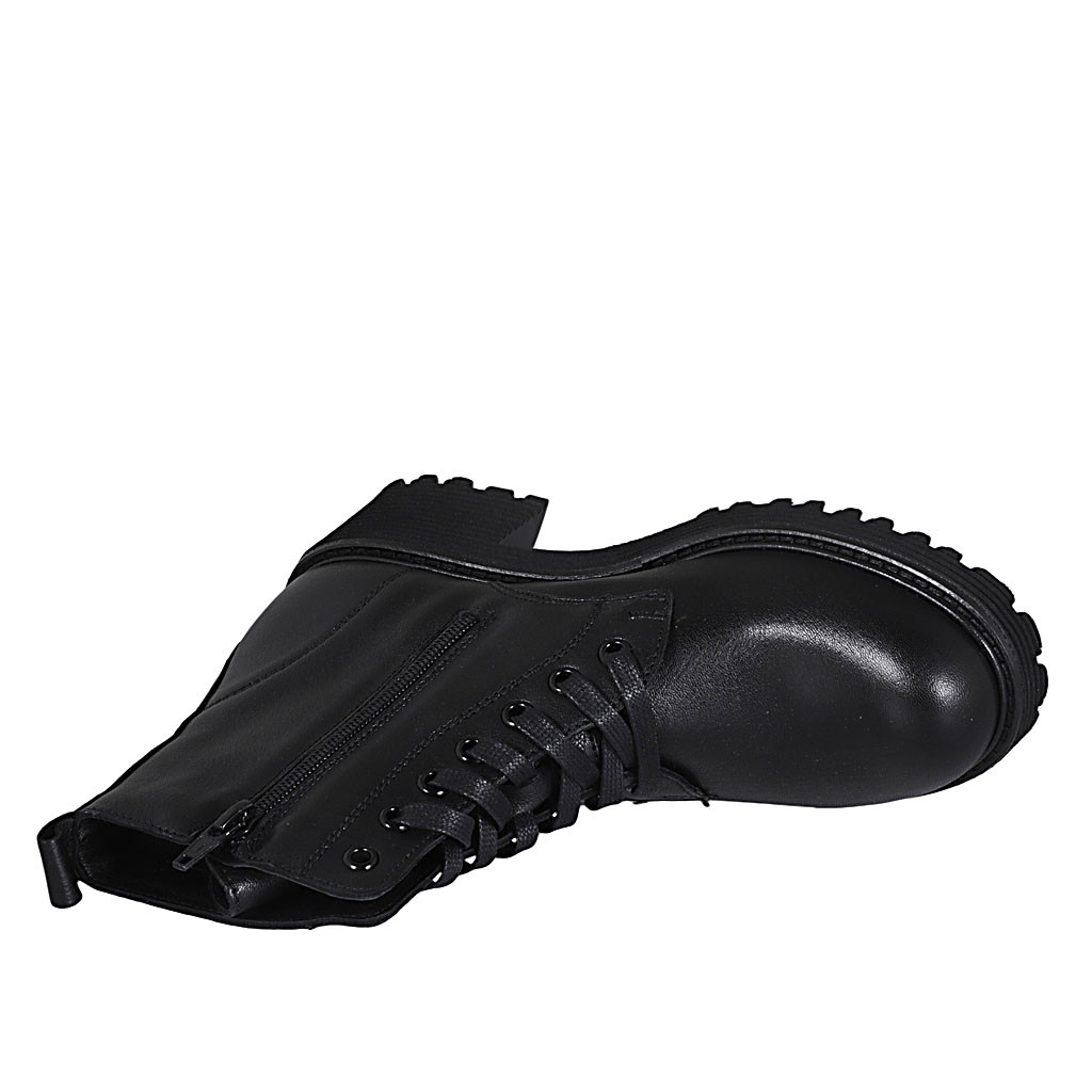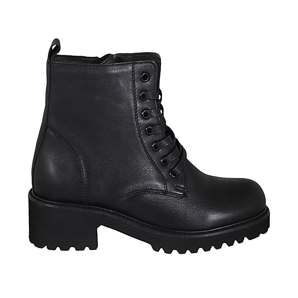 Woman's laced ankle boot with zipper in black leather heel 5 - Available sizes:  44