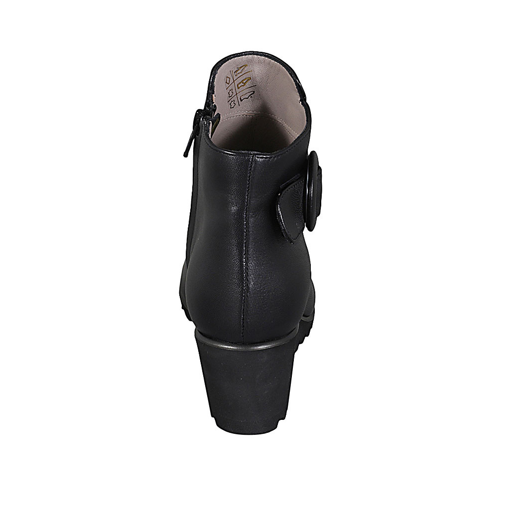Woman's ankle boot with buckle and zipper in black leather wedge heel 6 - Available sizes:  42, 43