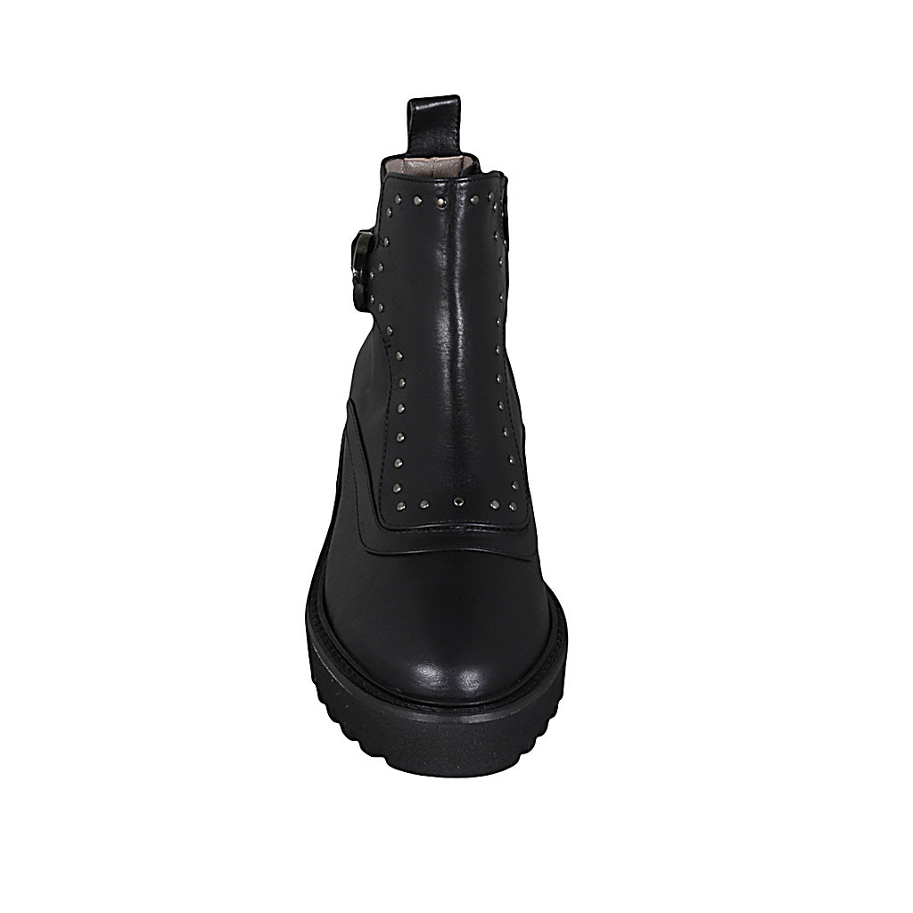 Woman's ankle boot with elastic bands in cognac brown suede with heel 3