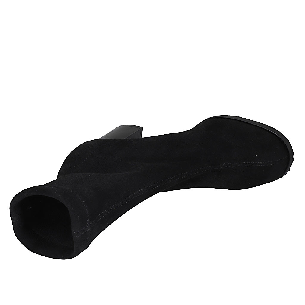 Woman's ankle boot in black elastic material and suede heel 7 - Available sizes:  33, 43