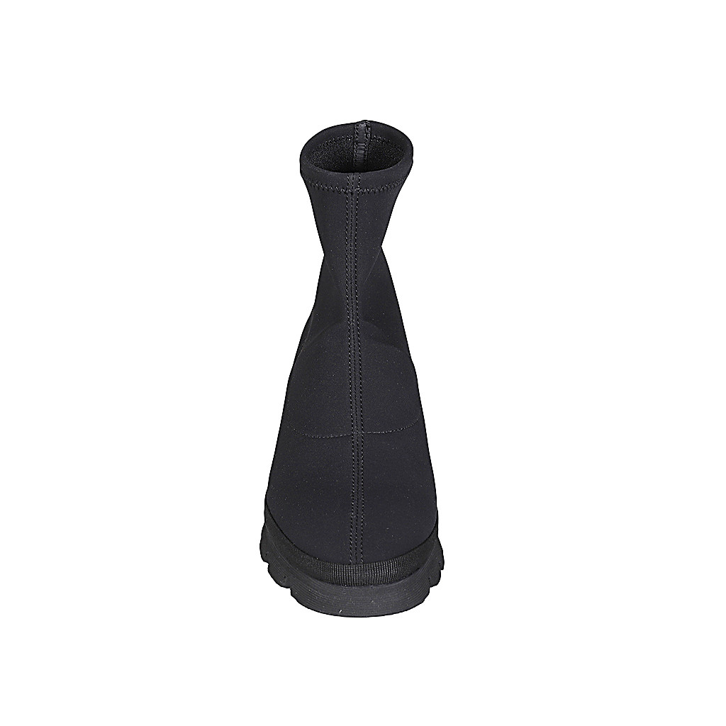 Woman's ankle boot in black elastic fabric wedge heel 3