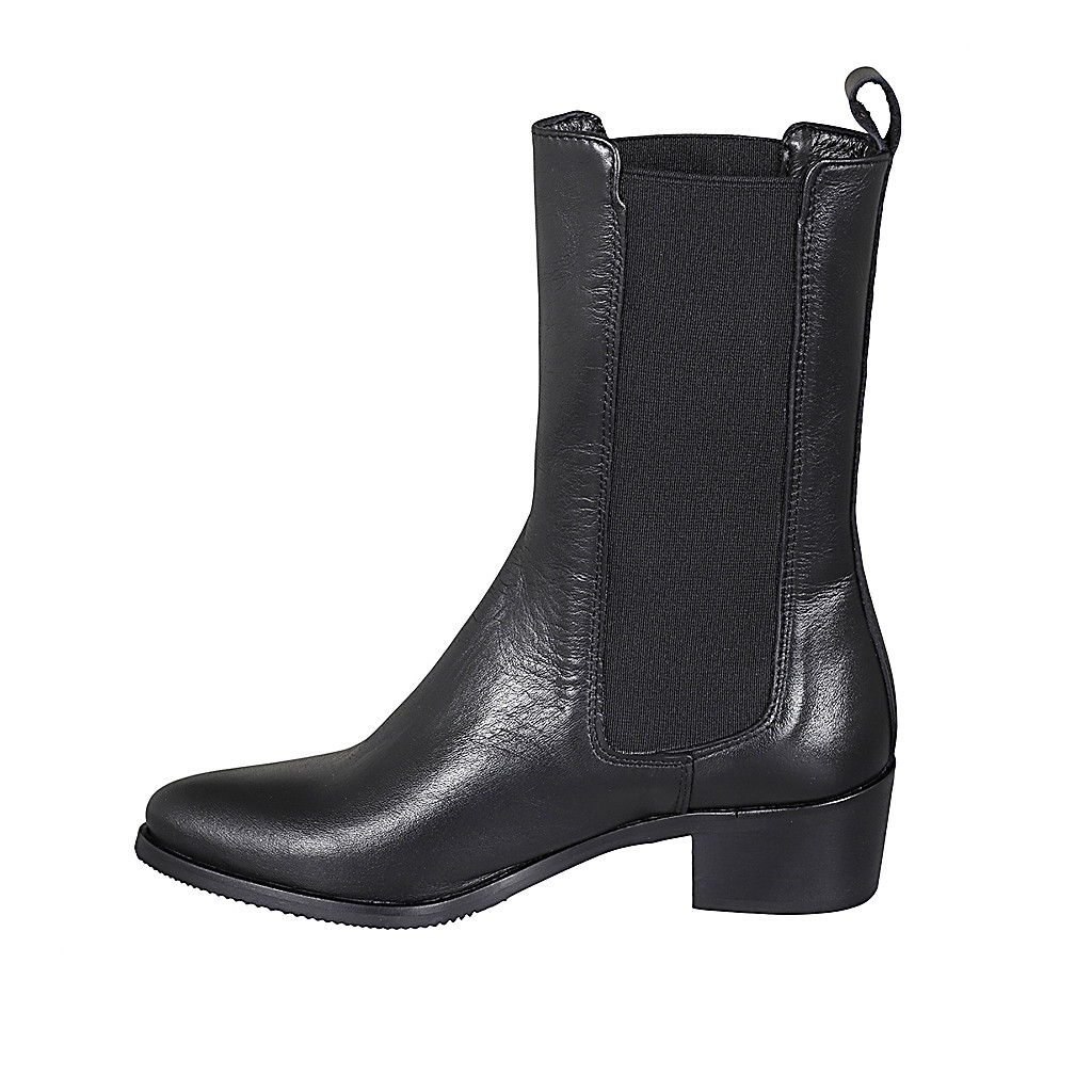 Woman's ankle boot in black leather with elastic bands and wingtip heel 5