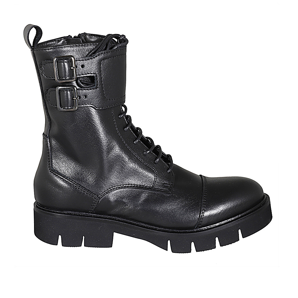 Woman's ankle boot with zipper and accessory in black suede with heel 7