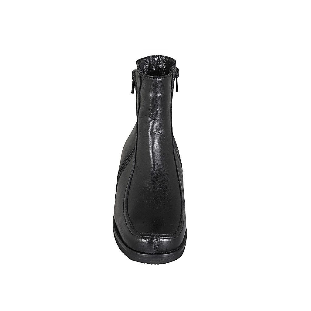 Woman's ankle boot with zippers and buckles in black leather and printed leather heel 3