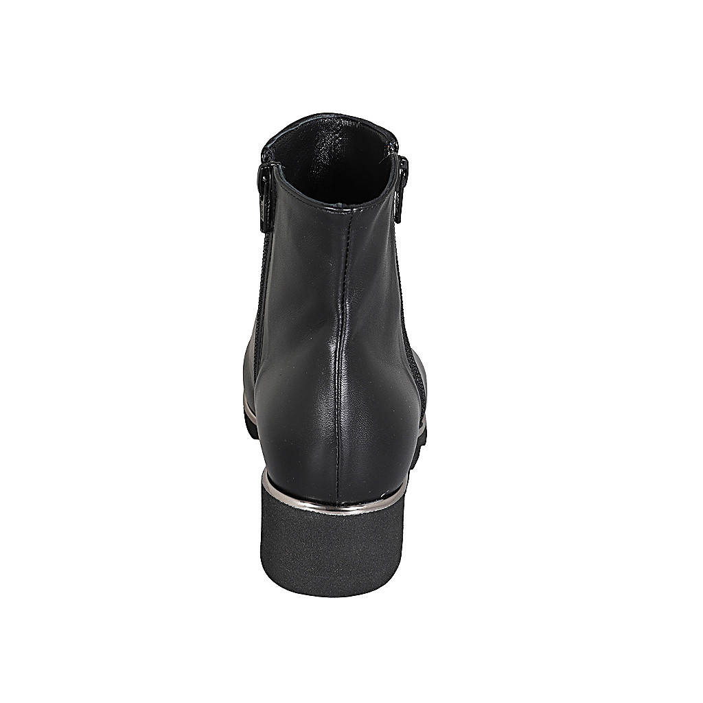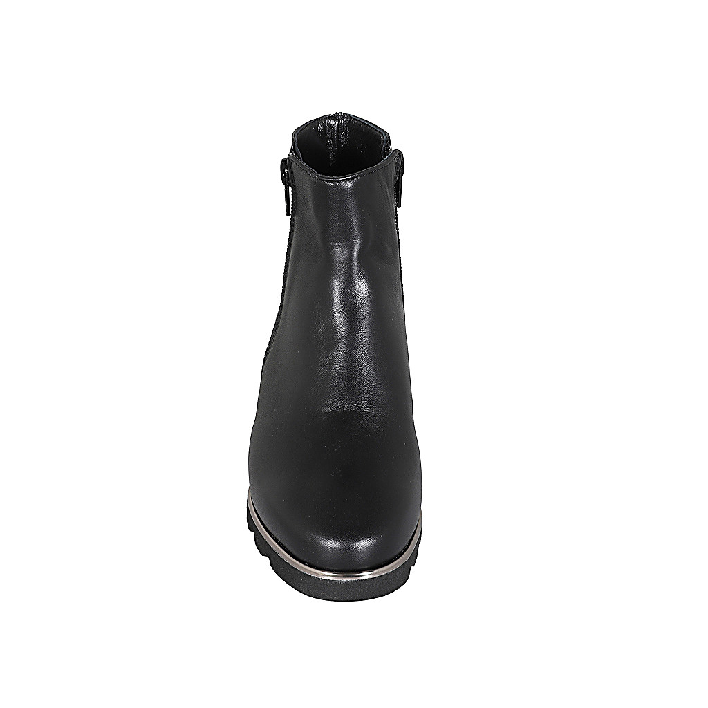 Woman's ankle boot in black leather with zippers and removable insole wedge heel 4