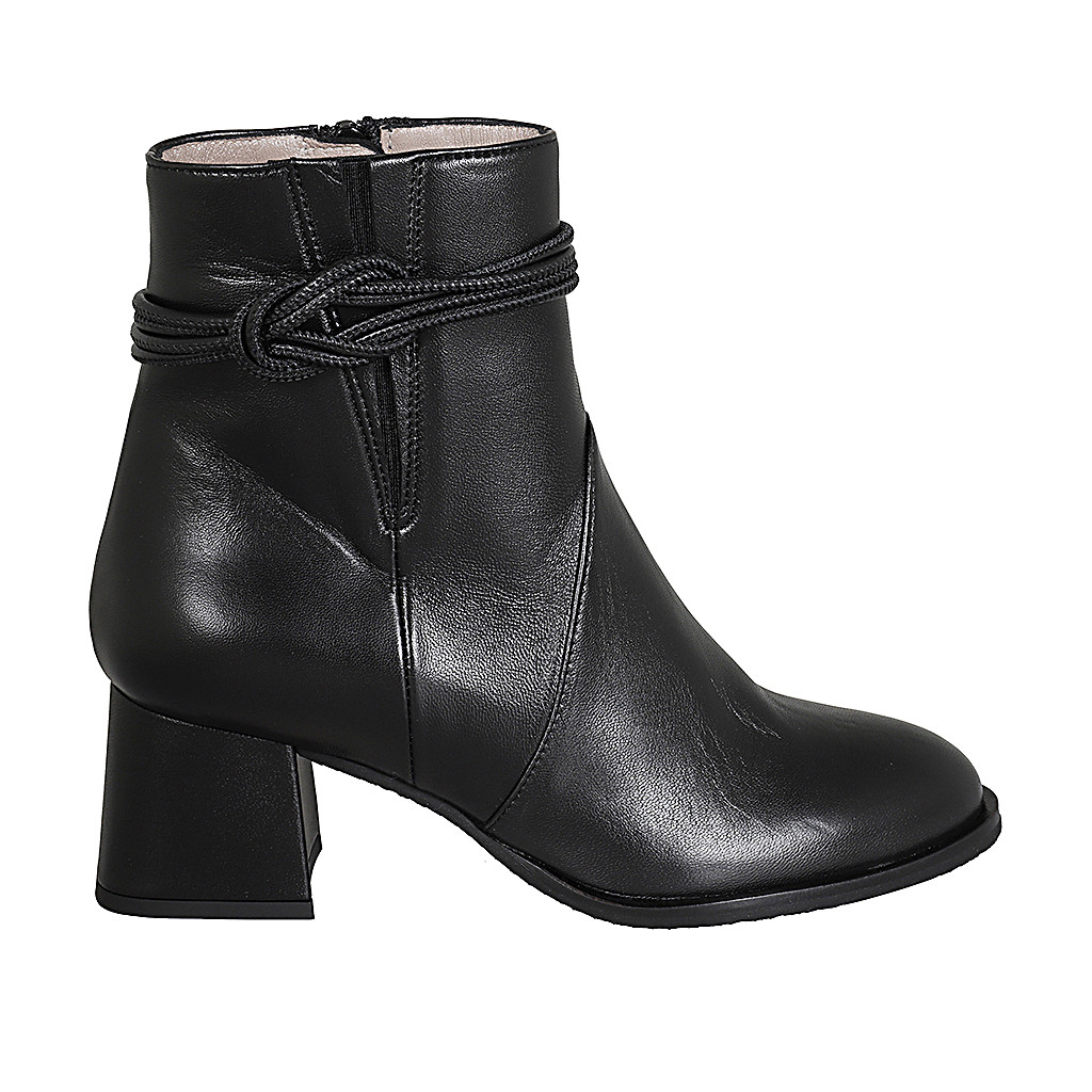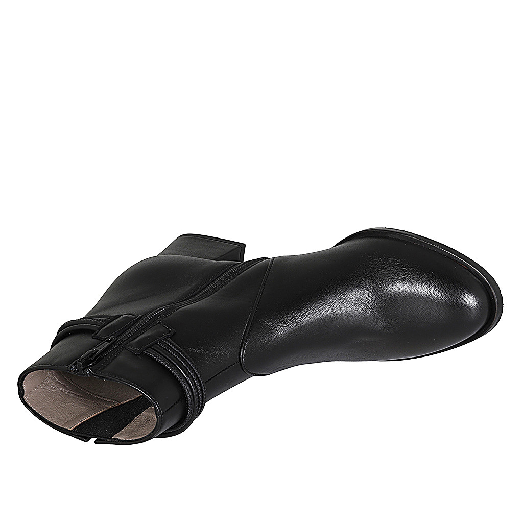 Woman's ankle boot with zipper, elastic band and accessory in black leather with heel 5 - Available sizes:  32