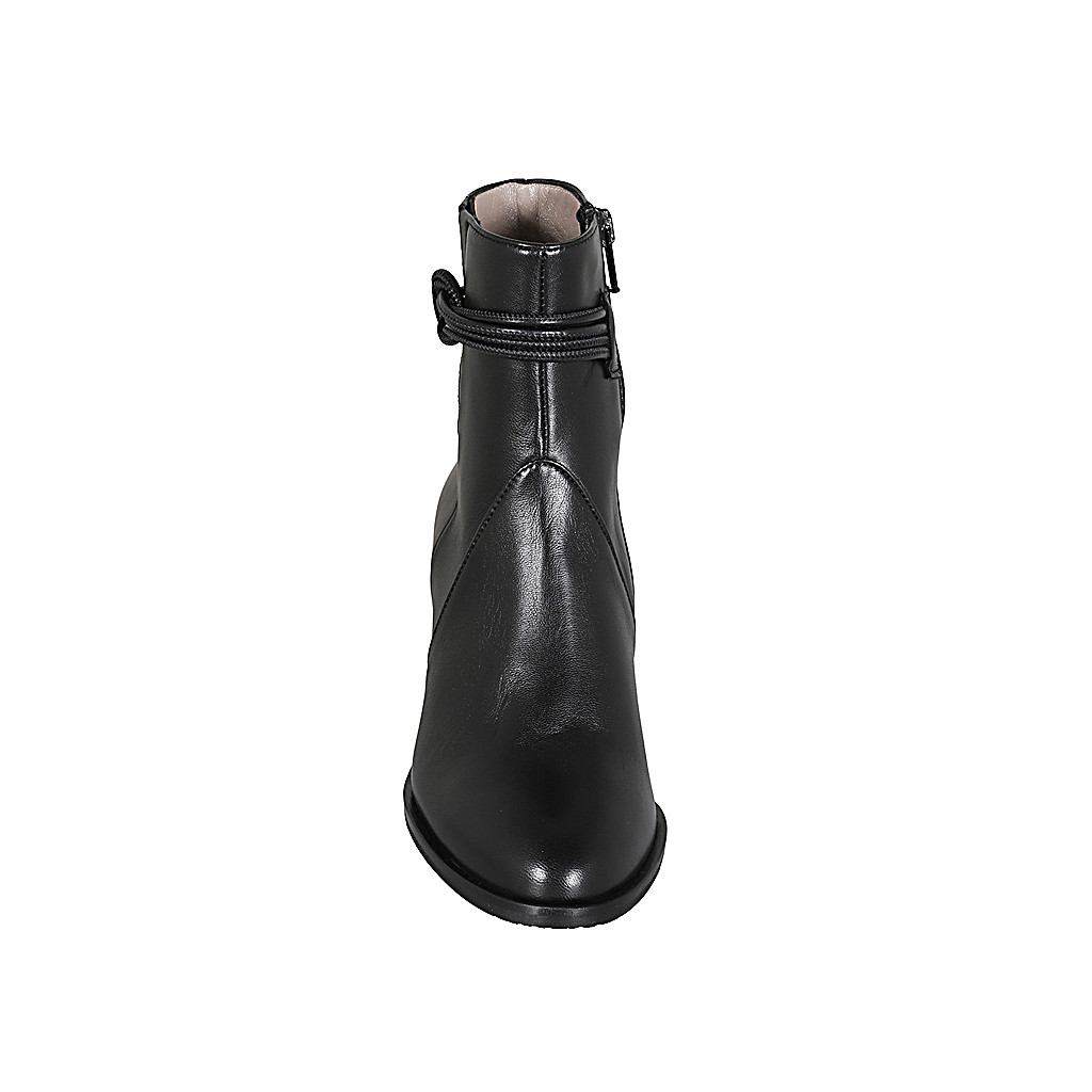 Woman's ankle boot with zipper, elastic band and accessory in black leather with heel 5