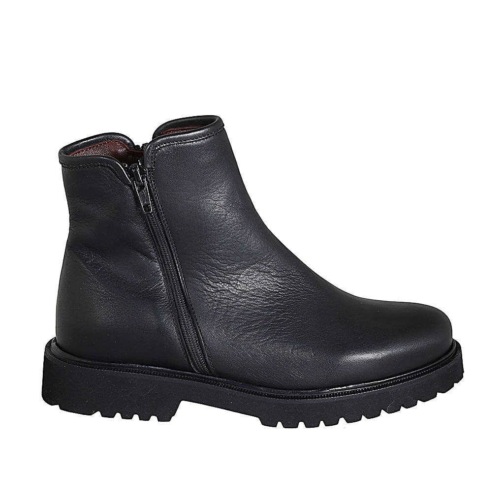 Woman's ankle boot with zippers in black leather heel 3 - Available sizes:  33